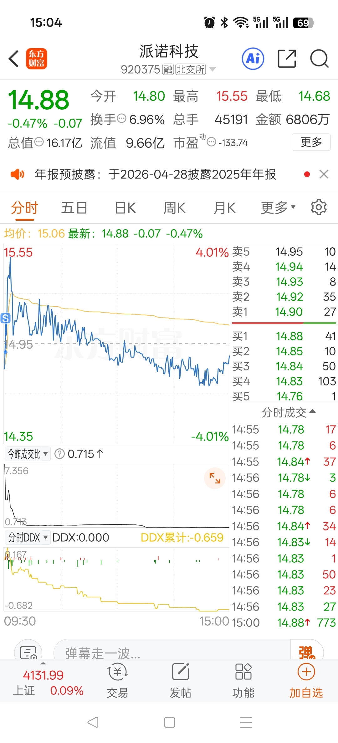 $派诺科技(SZ920375)$ 早盘14.90低位卖的,居然卖对了
