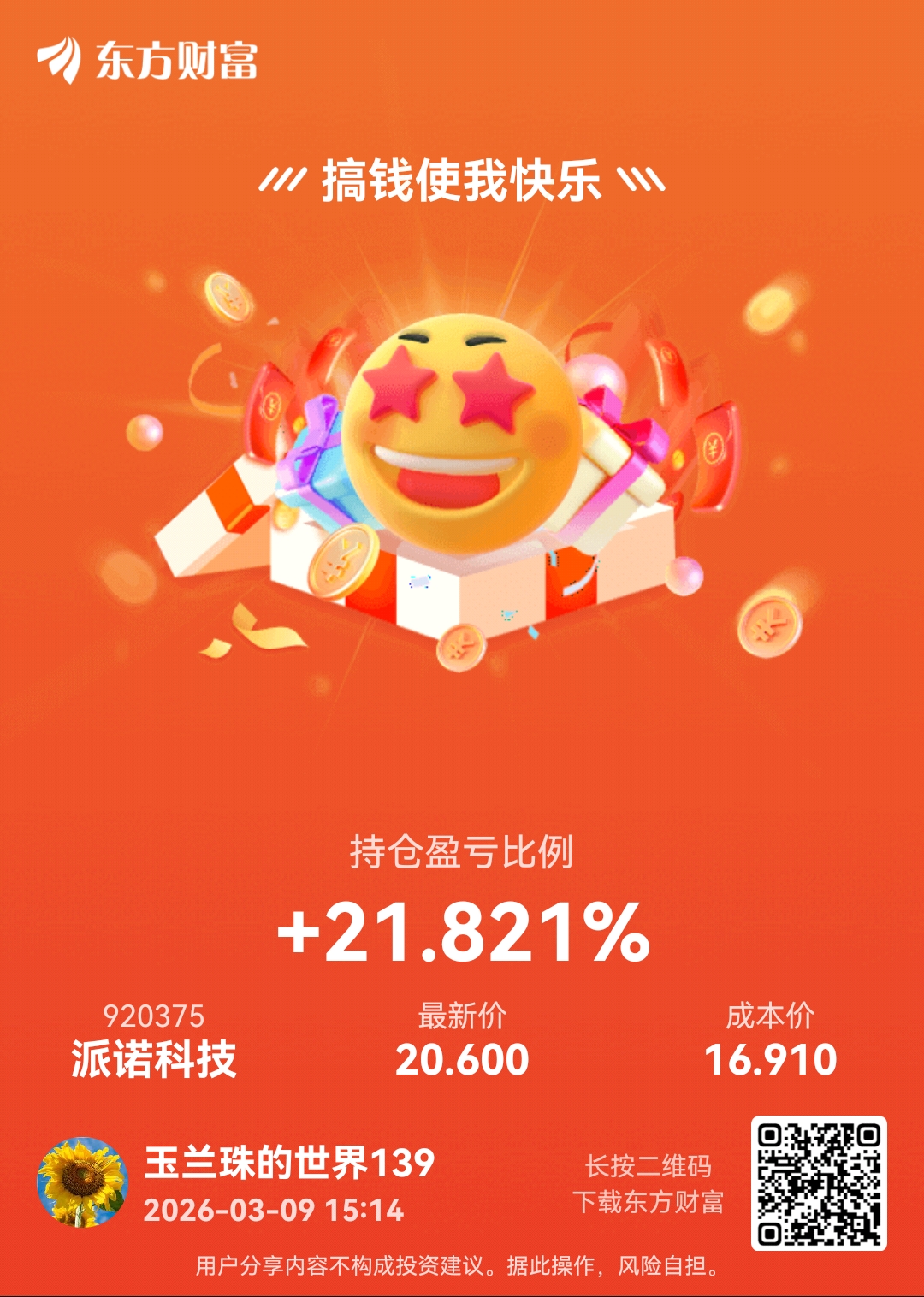 温馨提示: 1.根据《证券法》规定,禁止编造、传播虚假信息或者误导性信息,扰乱证券市场;2.用户在本社区发表的所有资料、言论等仅代表个人观点,与本网站立场无关,不对您构成任何投资建议。用户应基于自己的独立判断,自行决定证券投资并承担相应风险。《东方财富社区管理规定》