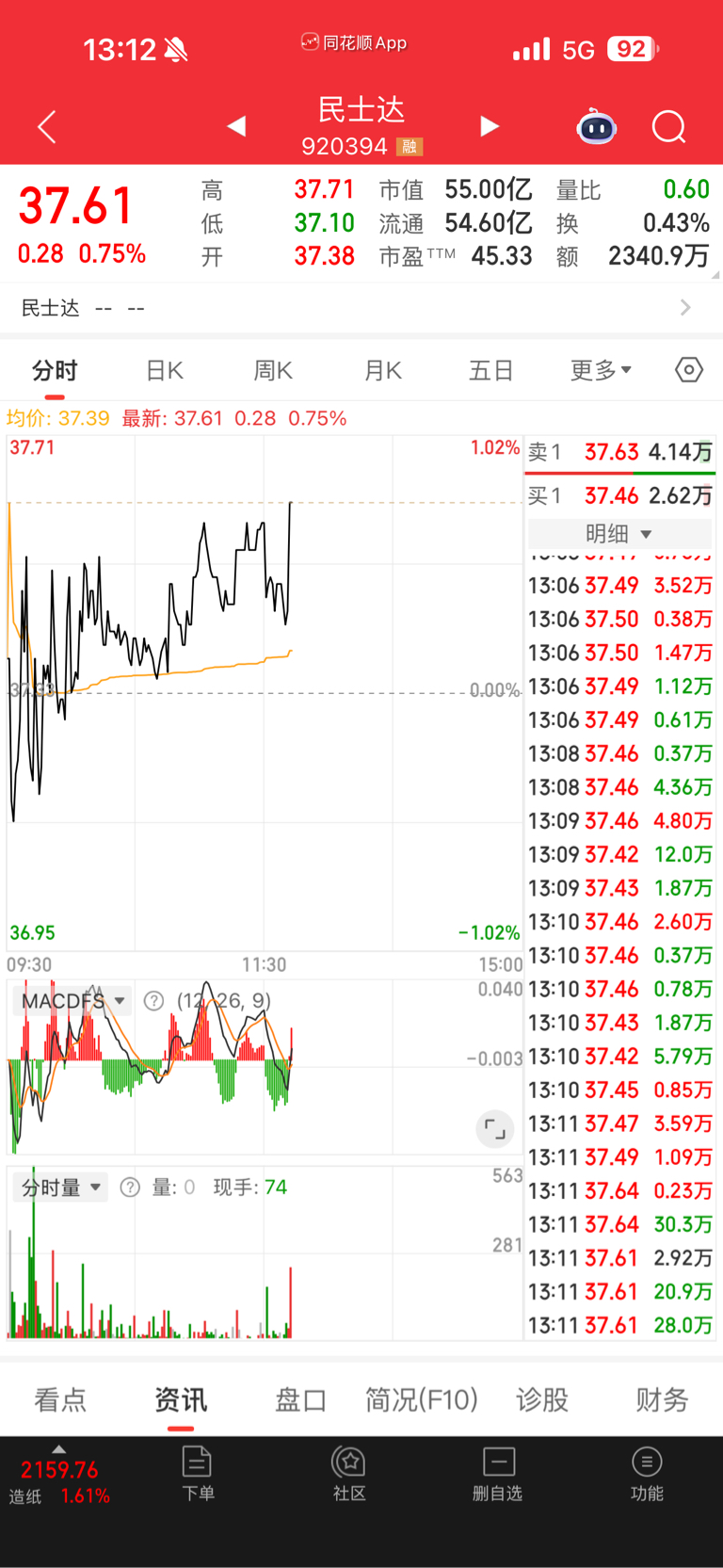 $民士达(SZ920394)$ 看到没,虽然上方没压力。但是2000块钱跟股指拉上去,马上有80w往下打。谁敢拉?