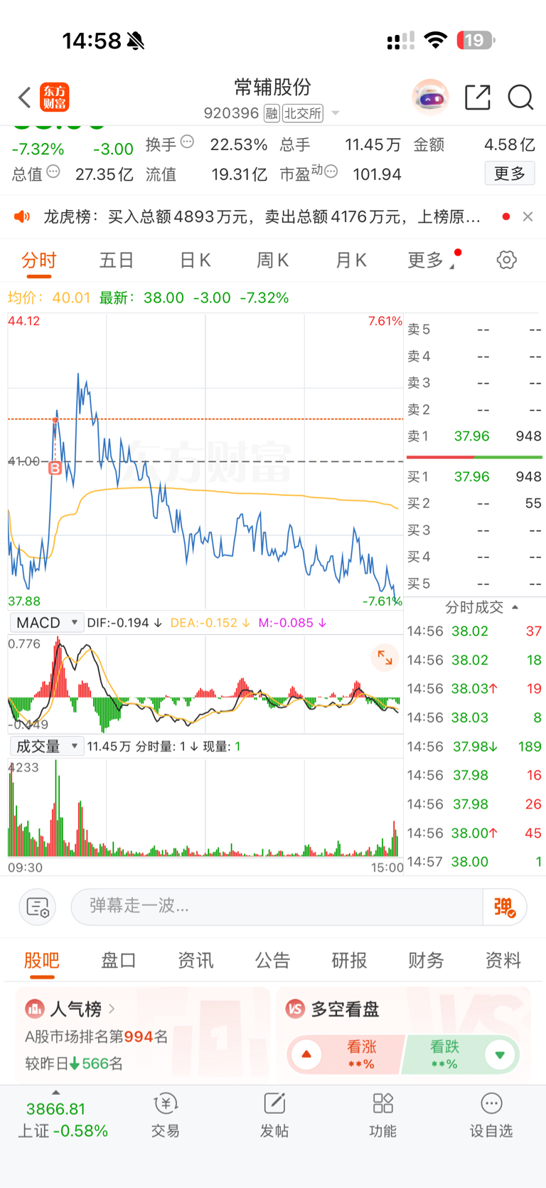 $常辅股份(SZ920396)$ 10点,妈呀