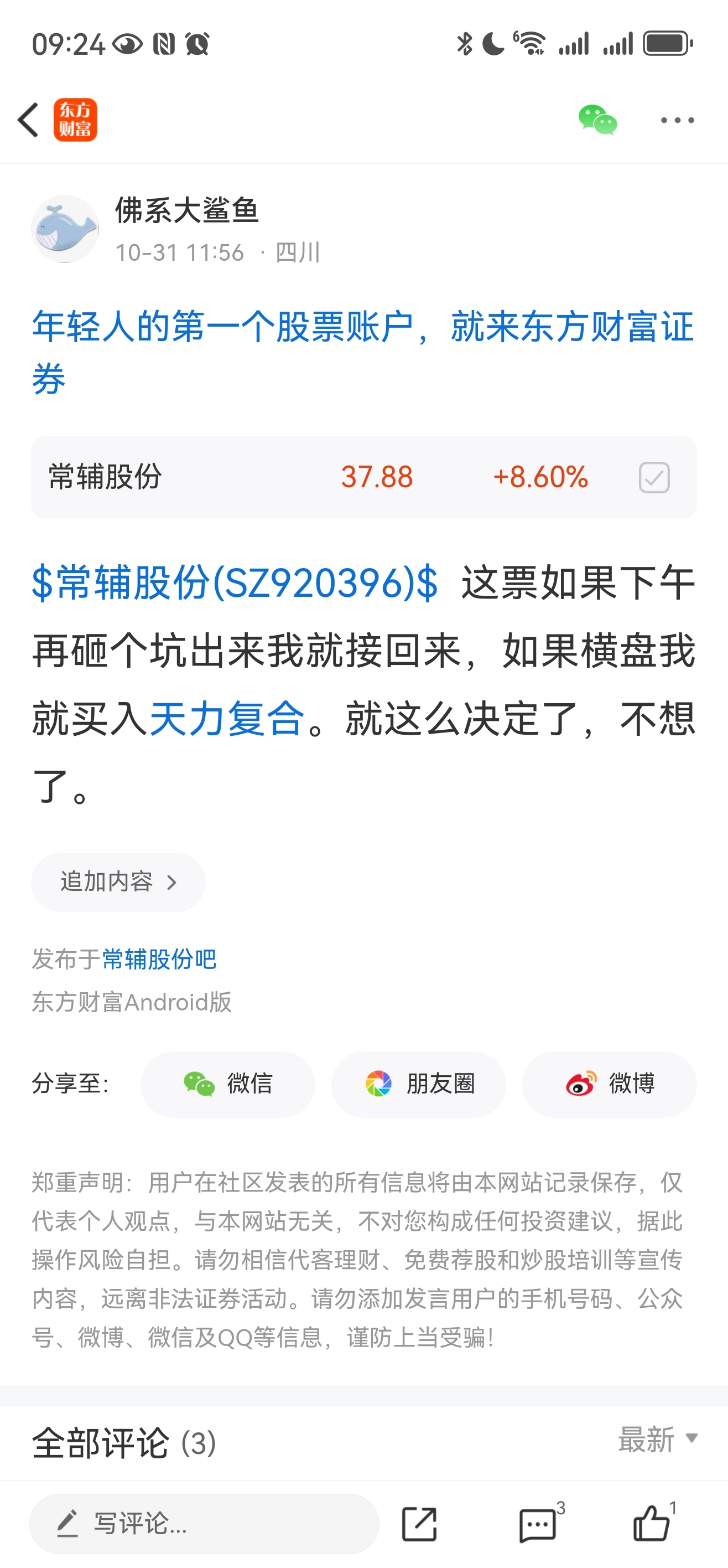 温馨提示: 1.根据《证券法》规定,禁止编造、传播虚假信息或者误导性信息,扰乱证券市场;2.用户在本社区发表的所有资料、言论等仅代表个人观点,与本网站立场无关,不对您构成任何投资建议。用户应基于自己的独立判断,自行决定证券投资并承担相应风险。《东方财富社区管理规定》