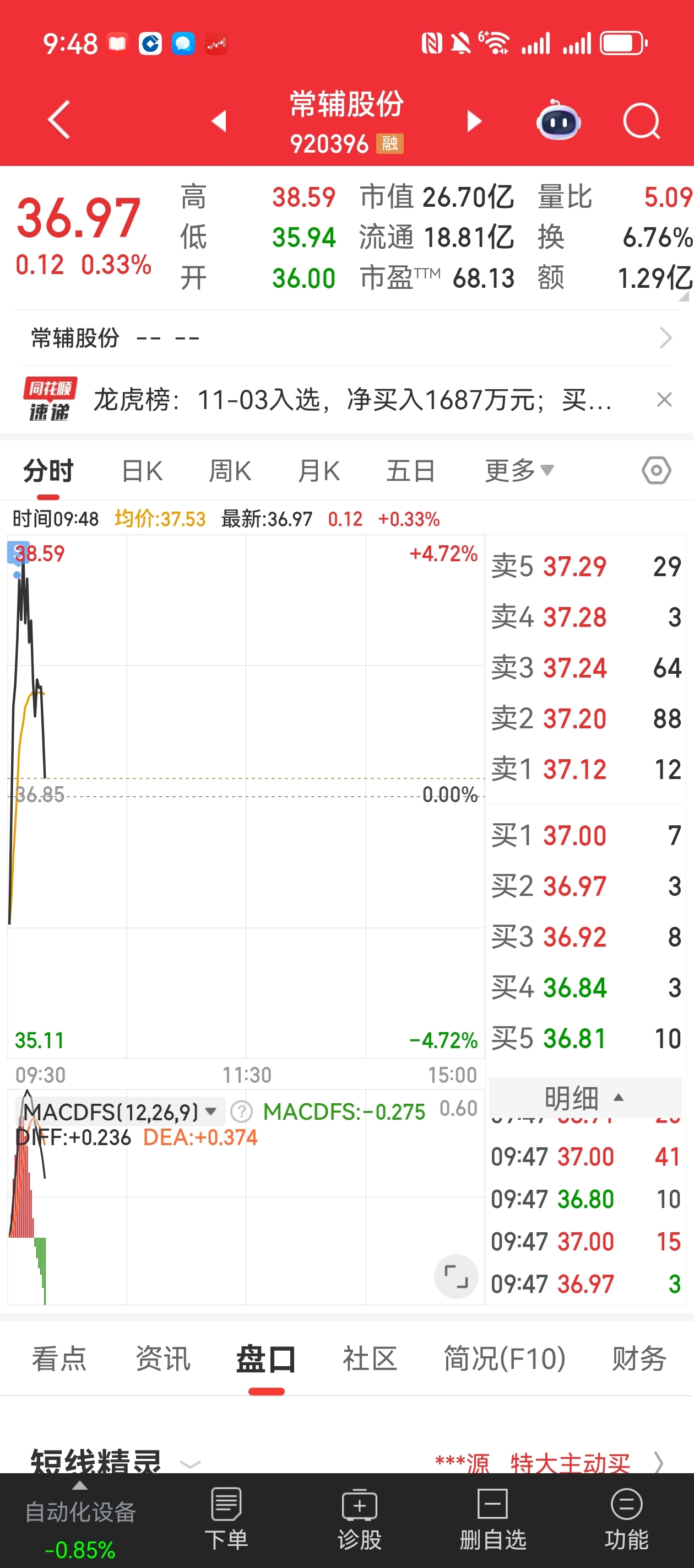 $常辅股份(SZ920396)$ 果然不能格局,一次都不行,每次都是冲高回落,能不能硬一次