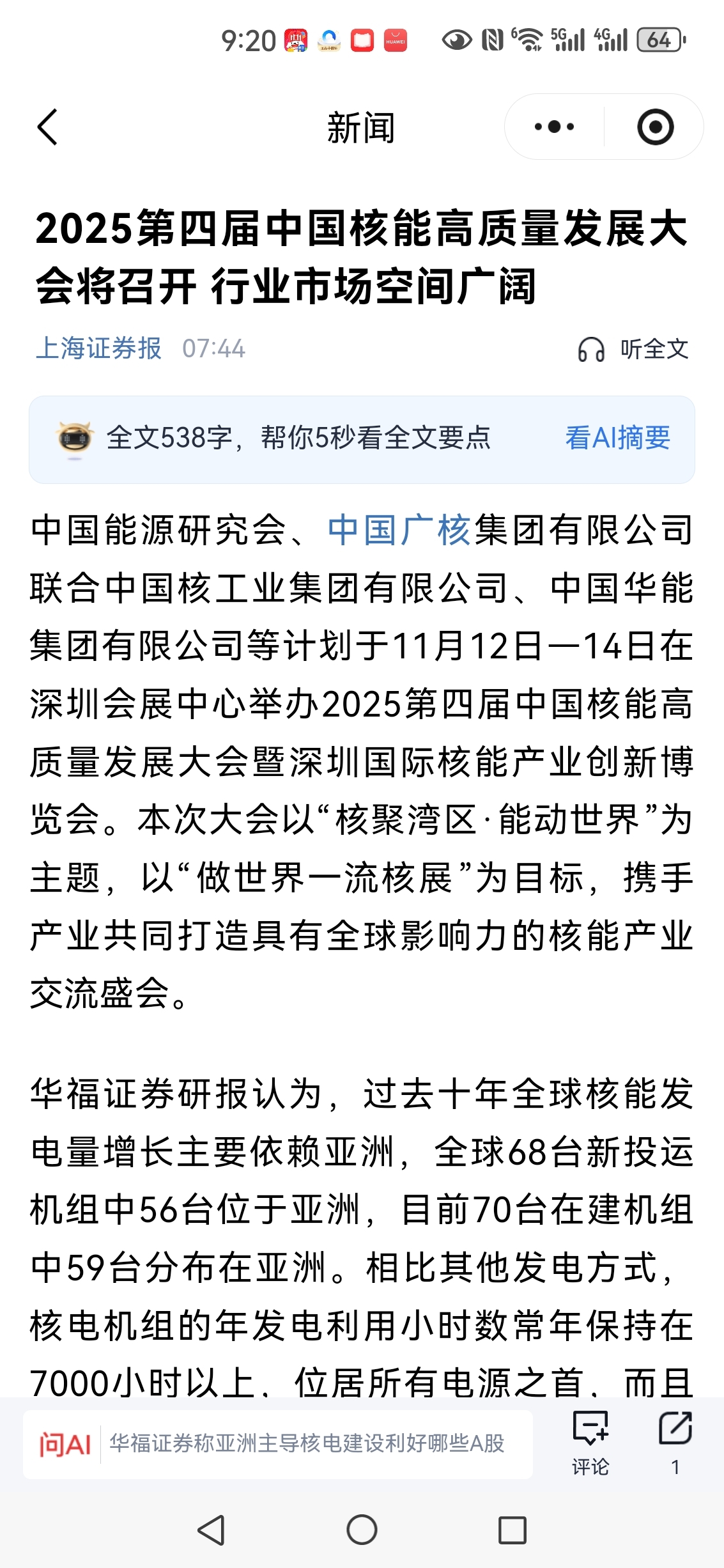中国核能大会11月12日召开,利好不断,见下图,常辅今天将大涨!