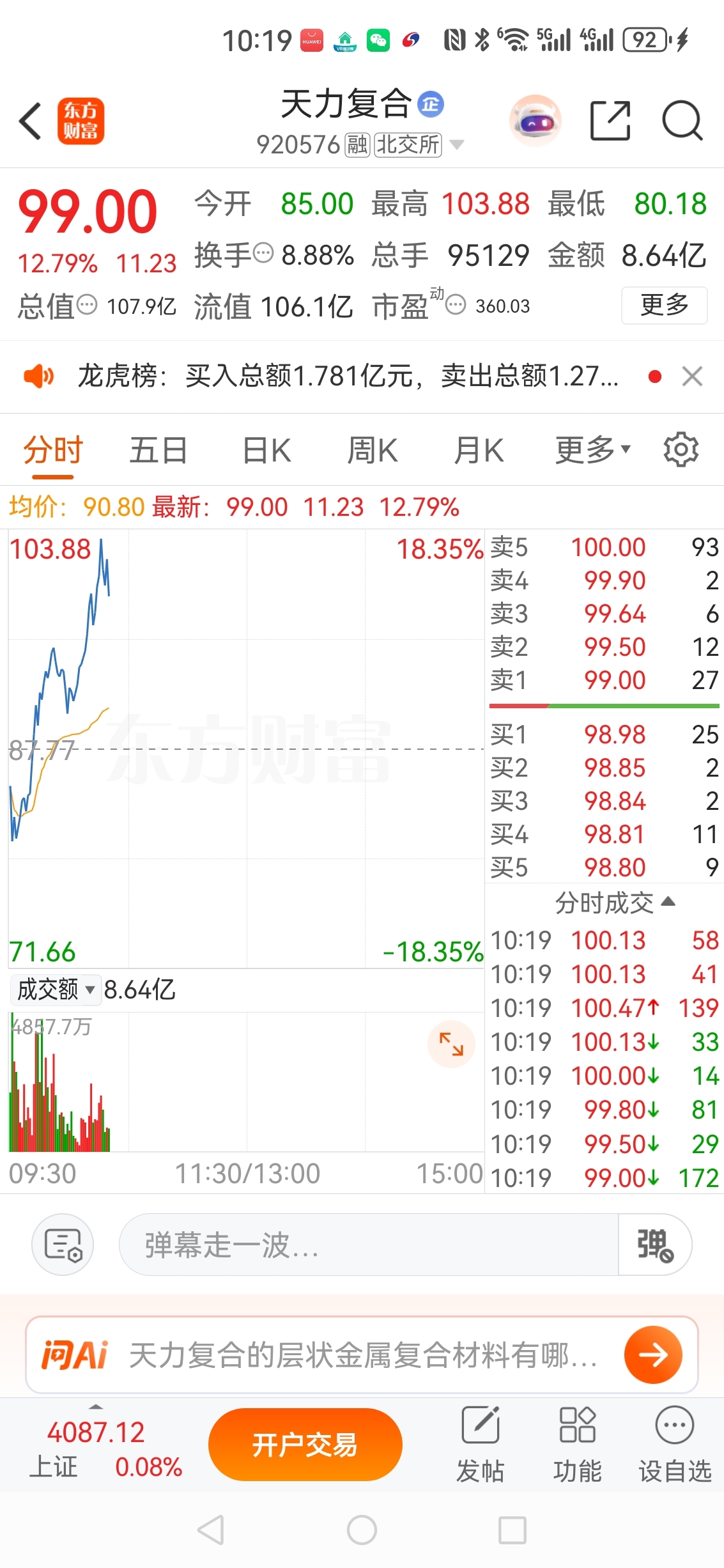 核聚变龙头天力复合涨了13个点,常辅加仓5000股,随时一飞冲天