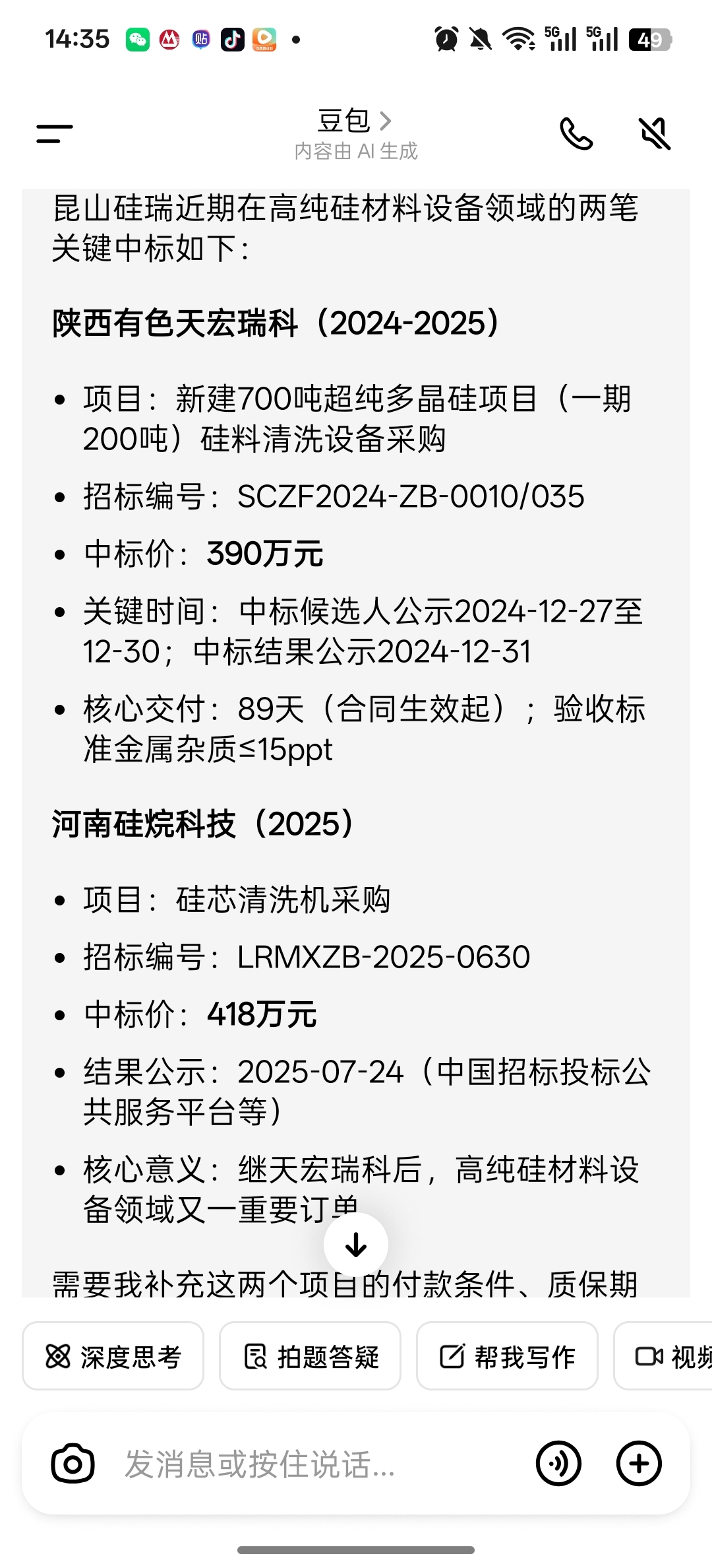 $硅烷科技(SZ920402)$ 陕西有色天瑞今年1季度量产区熔多晶硅,对比这个进度硅烷科技的区熔多晶硅应该在一个月内认证量产了@涅槃重生捉妖盟 @佛山游资帮 @知行猎手 $C摩尔-U(SH688795)$ $华润微(SH688396)$