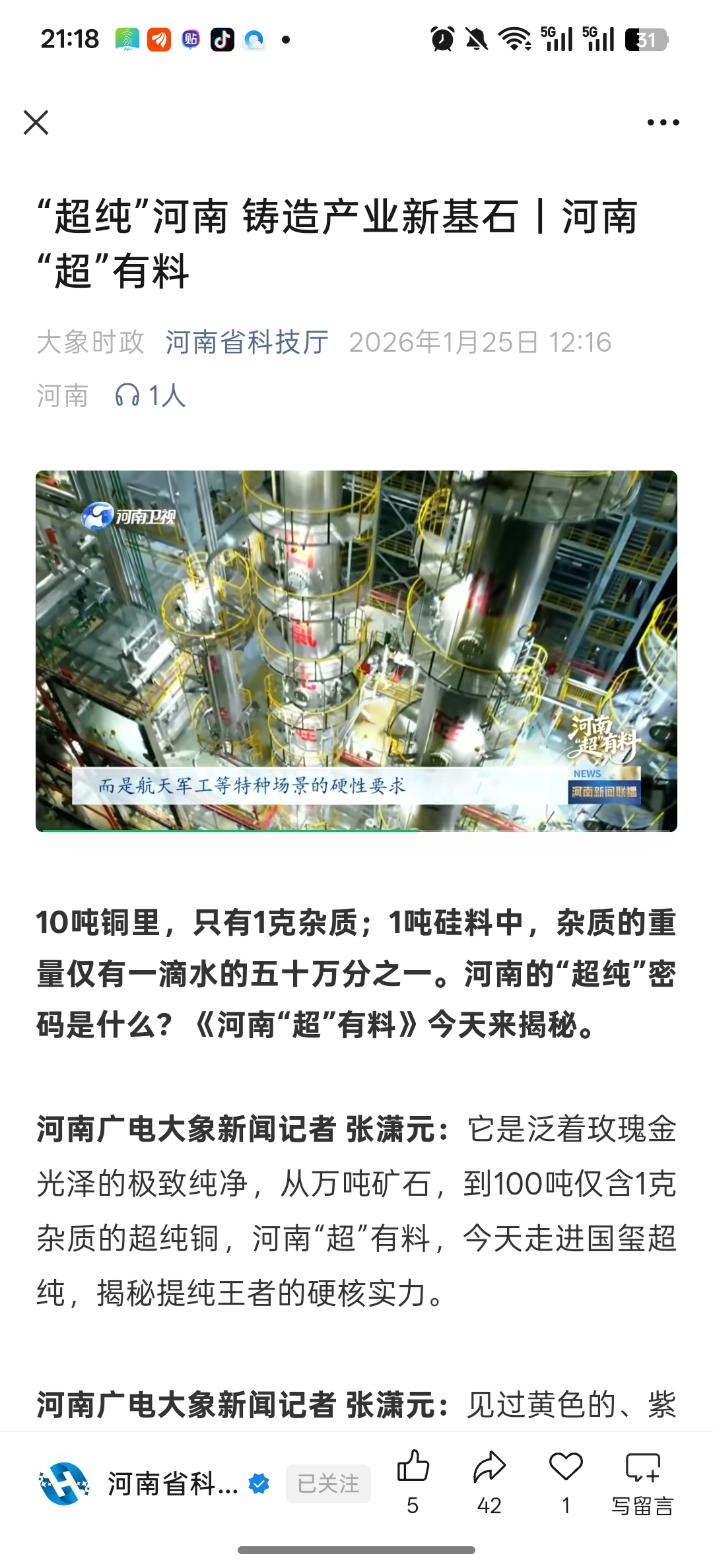 2026年1月25日河南卫视对硅烷科技区熔多晶硅的专访电视采访视频,产品适用航天