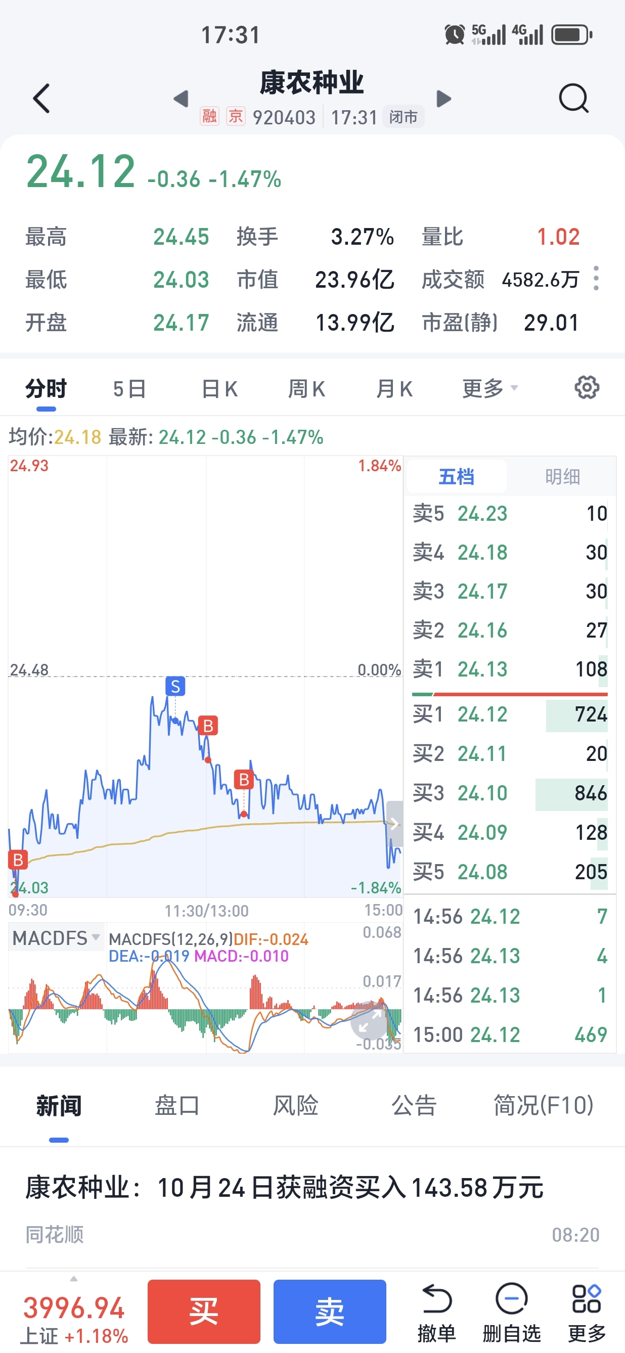 $康农种业(SZ920403)$ 后面犹豫没卖,败笔
