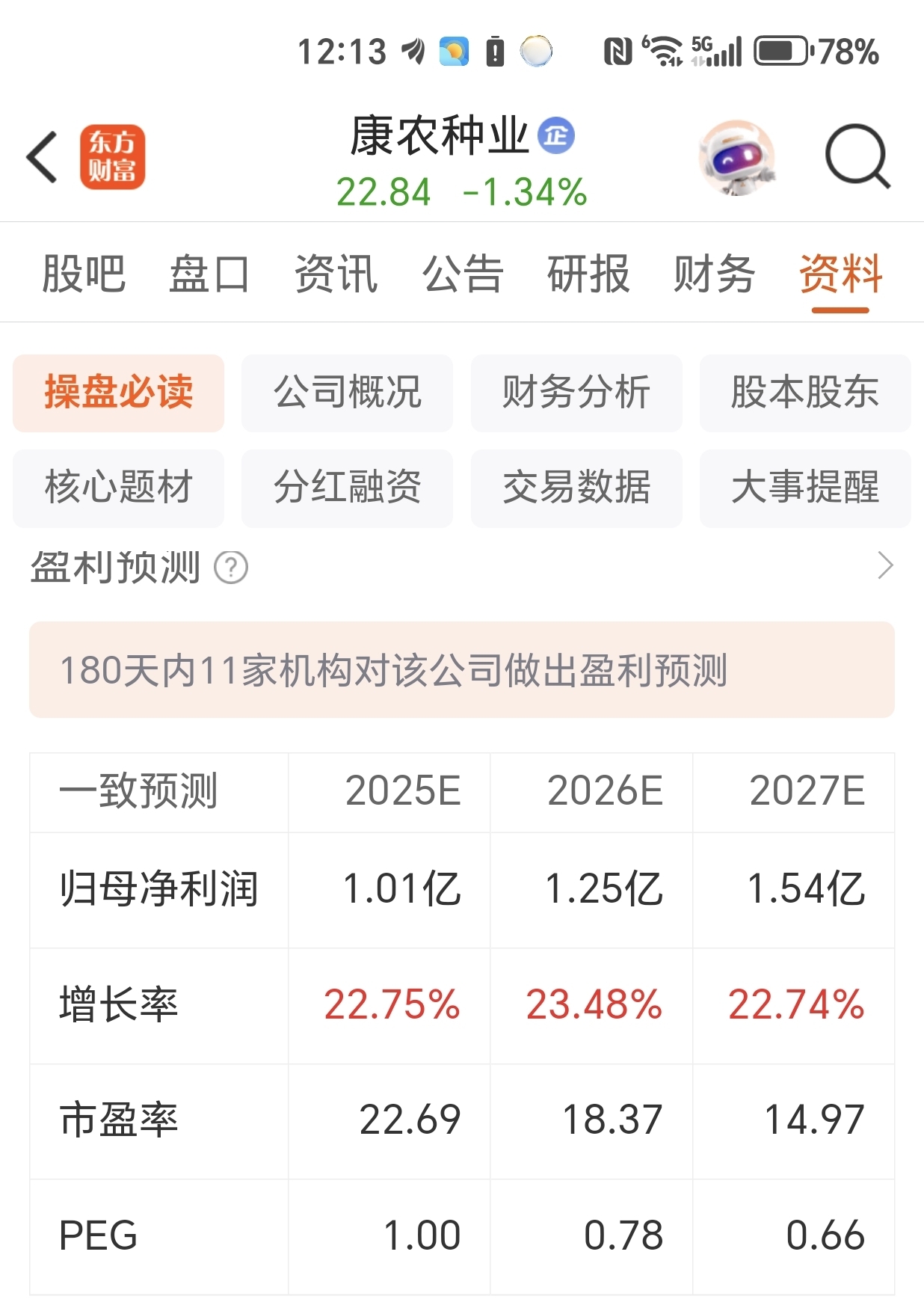 康农种业业绩预测(参考)
