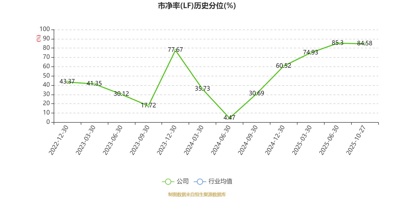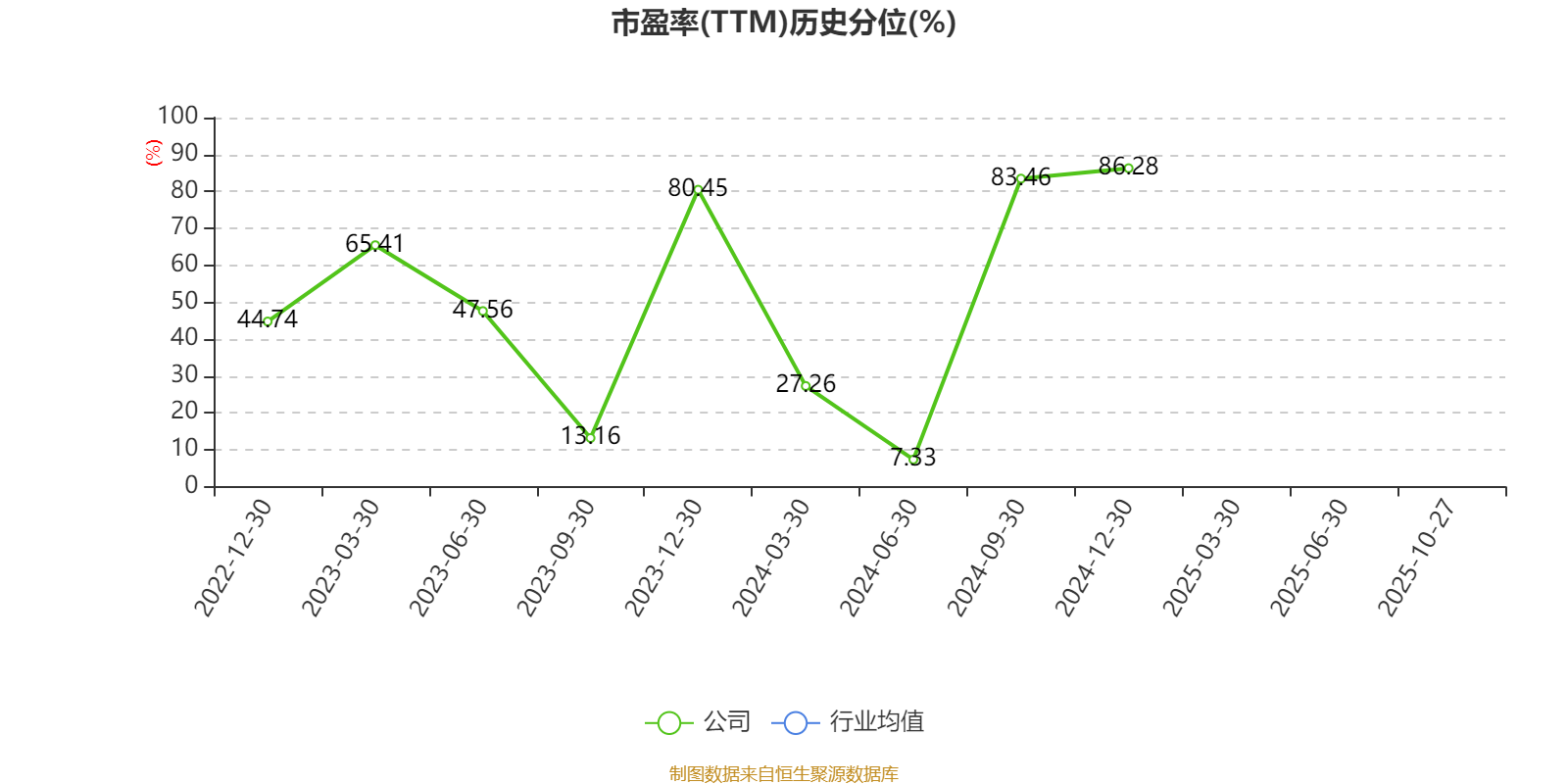 市盈率、市净率为负时,不显示当期分位数,会导致折线图中断。
