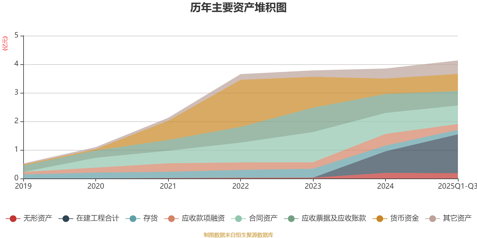 资产重大变化方面,截至2025年三季度末,公司在建工程合计较上年末增加80.23%,占公司总资产比重上升13.32个百分点;应收款项融资较上年末减少50%,占公司总资产比重下降5.71个百分点;应收票据及应收账款较上年末减少23.2%,占公司总资产比重下降4.92个百分点;合同资产较上年末减少11.93%,占公司总资产比重下降3.41个百分点。