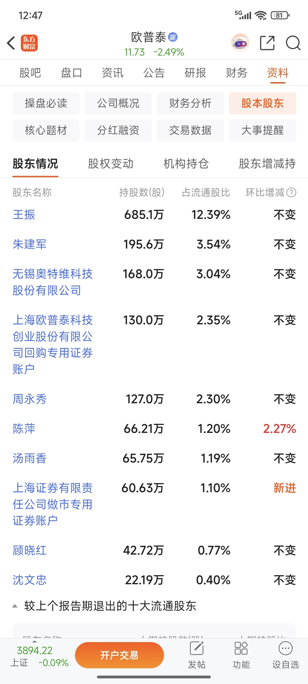 $欧普泰(SZ920414)$ 股东人数才5000多户,第十大流通股东才22万股,上海证券肯定不会拉升,今年目标就是砸盘。我还是去买点三维,昨晚做梦这要涨。