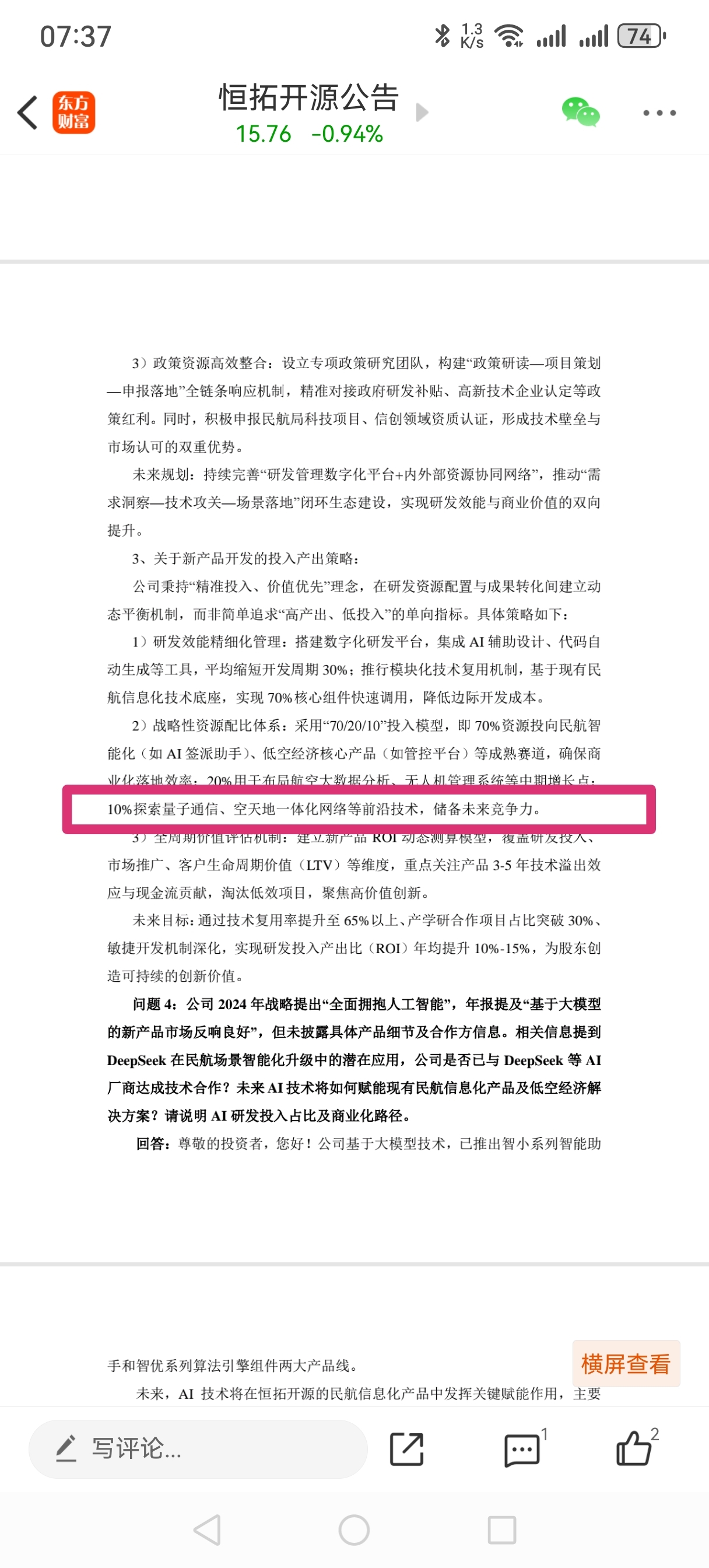 $恒拓开源(SZ920415)$ 也有量子科技概念