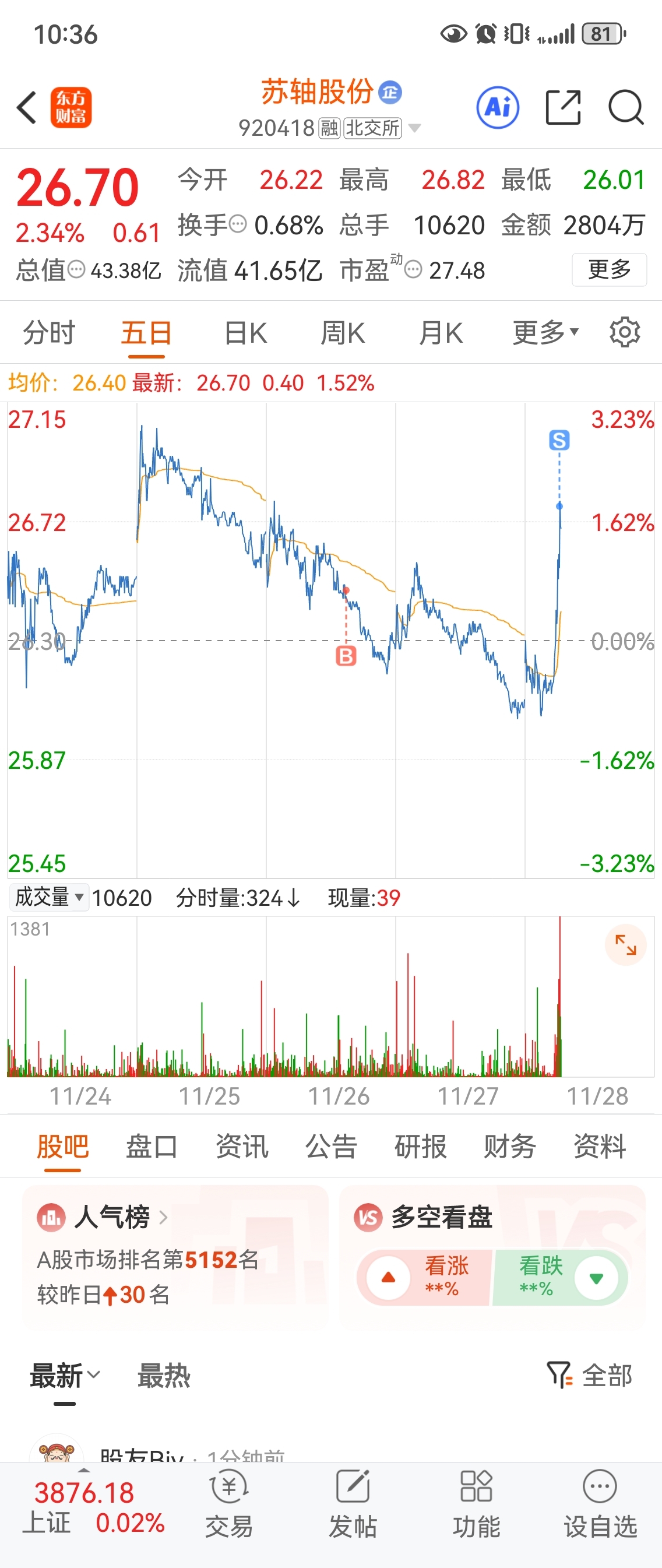 $苏轴股份(SZ920418)$ 这破股票,赚点钱就跟火中取栗似的
