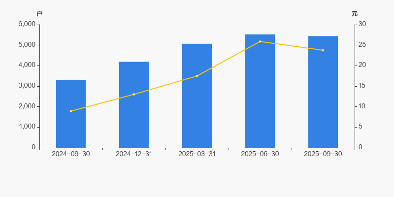 2024年9月30日至今,公司股东户数显著大幅增长,区间涨幅达64.75%。2024年9月30日至2025年9月30日区间股价上涨166.33%。
