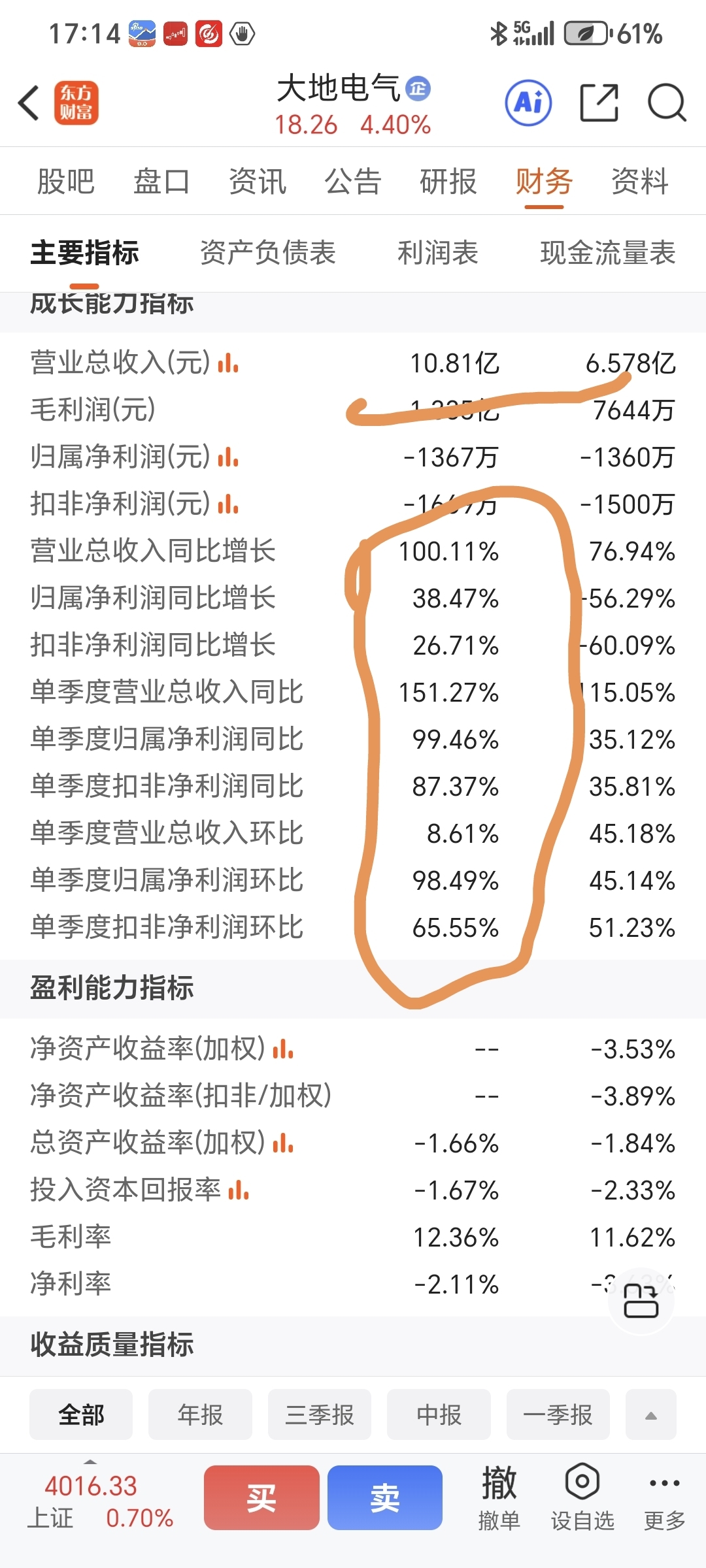 $大地电气(SZ920436)$ 业绩增长,利润增加