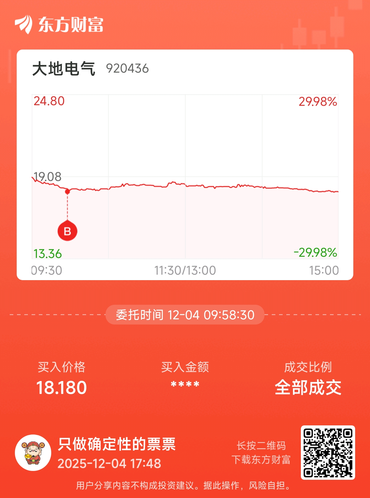 温馨提示: 1.根据《证券法》规定,禁止编造、传播虚假信息或者误导性信息,扰乱证券市场;2.用户在本社区发表的所有资料、言论等仅代表个人观点,与本网站立场无关,不对您构成任何投资建议。用户应基于自己的独立判断,自行决定证券投资并承担相应风险。《东方财富社区管理规定》