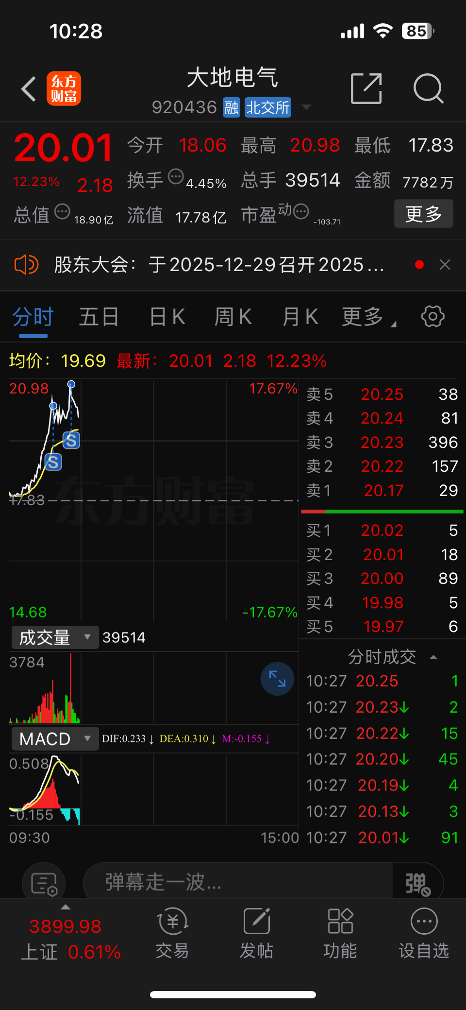 $大地电气(SZ920436)$ 受不了了!第三次解套,这股只能高抛低吸,走了各位,明年见!