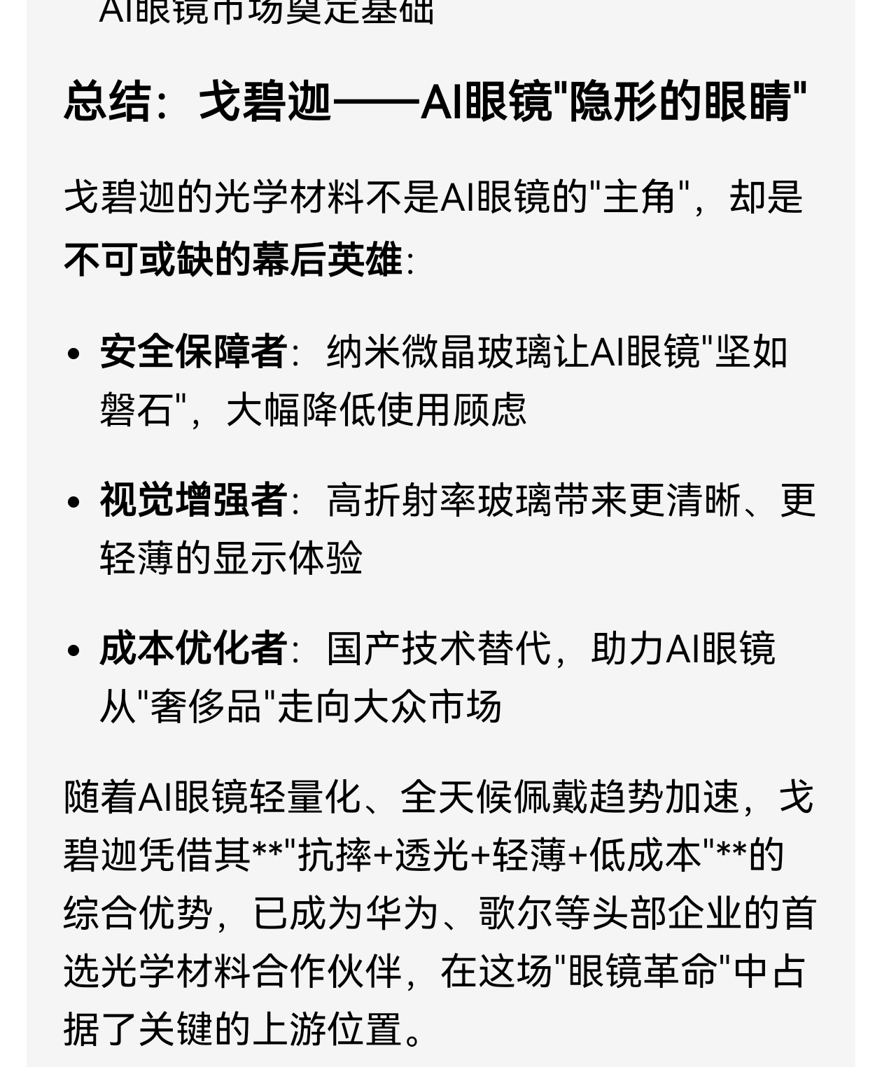 $戈碧迦(SZ920438)$ ai眼镜基材......