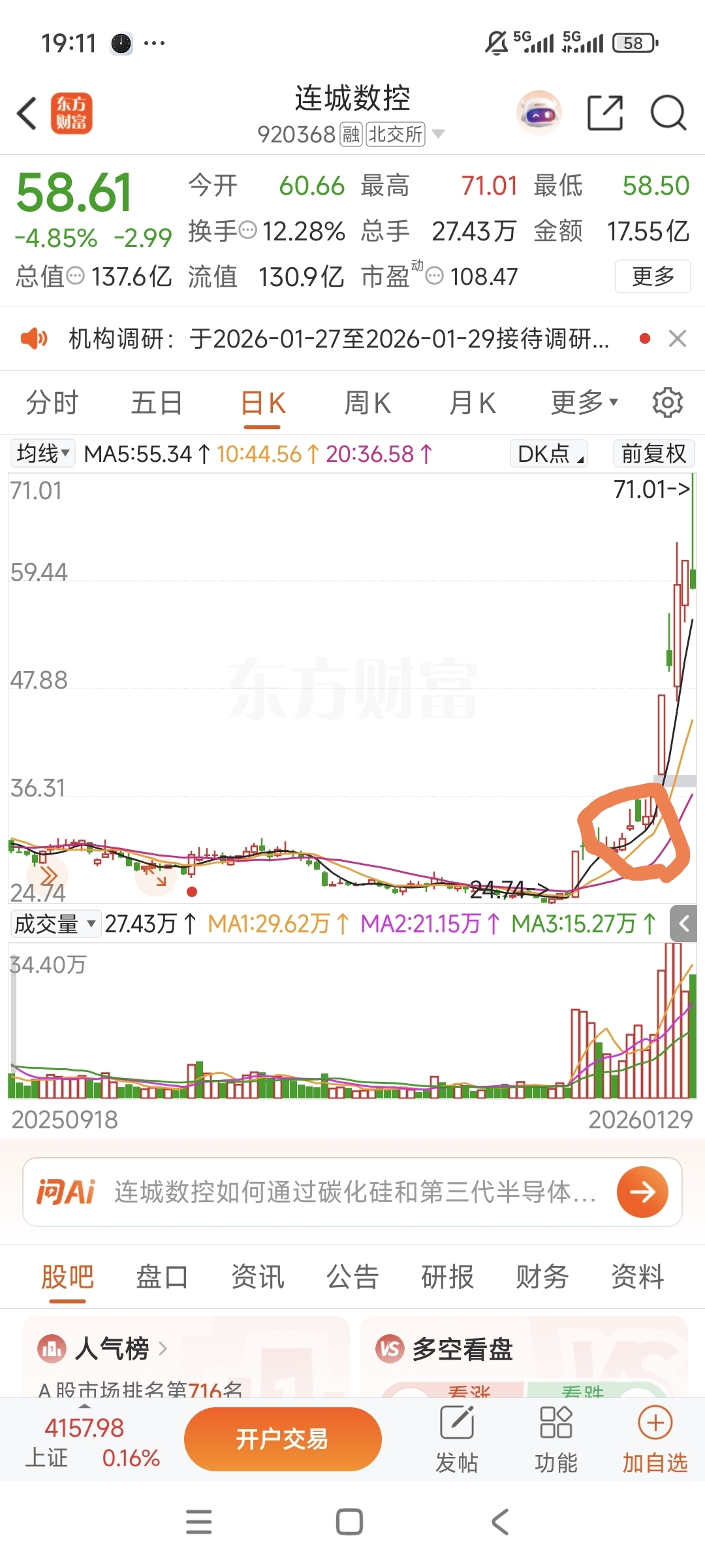 $戈碧迦(SZ920438)$ 现在的位置就是连城数控画圆圈启动的位置,春节前肯定翻倍