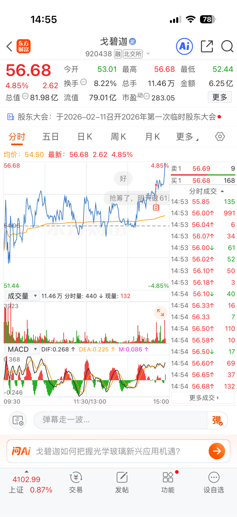 $戈碧迦(SZ920438)$ 20260204#炒股日记# 尾盘买入。 拉尾盘,危险?