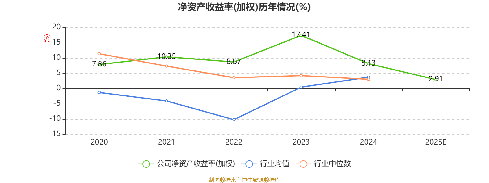 数据显示,2025年公司加权平均净资产收益率为2.91%,较上年同期下降5.22个百分点。
