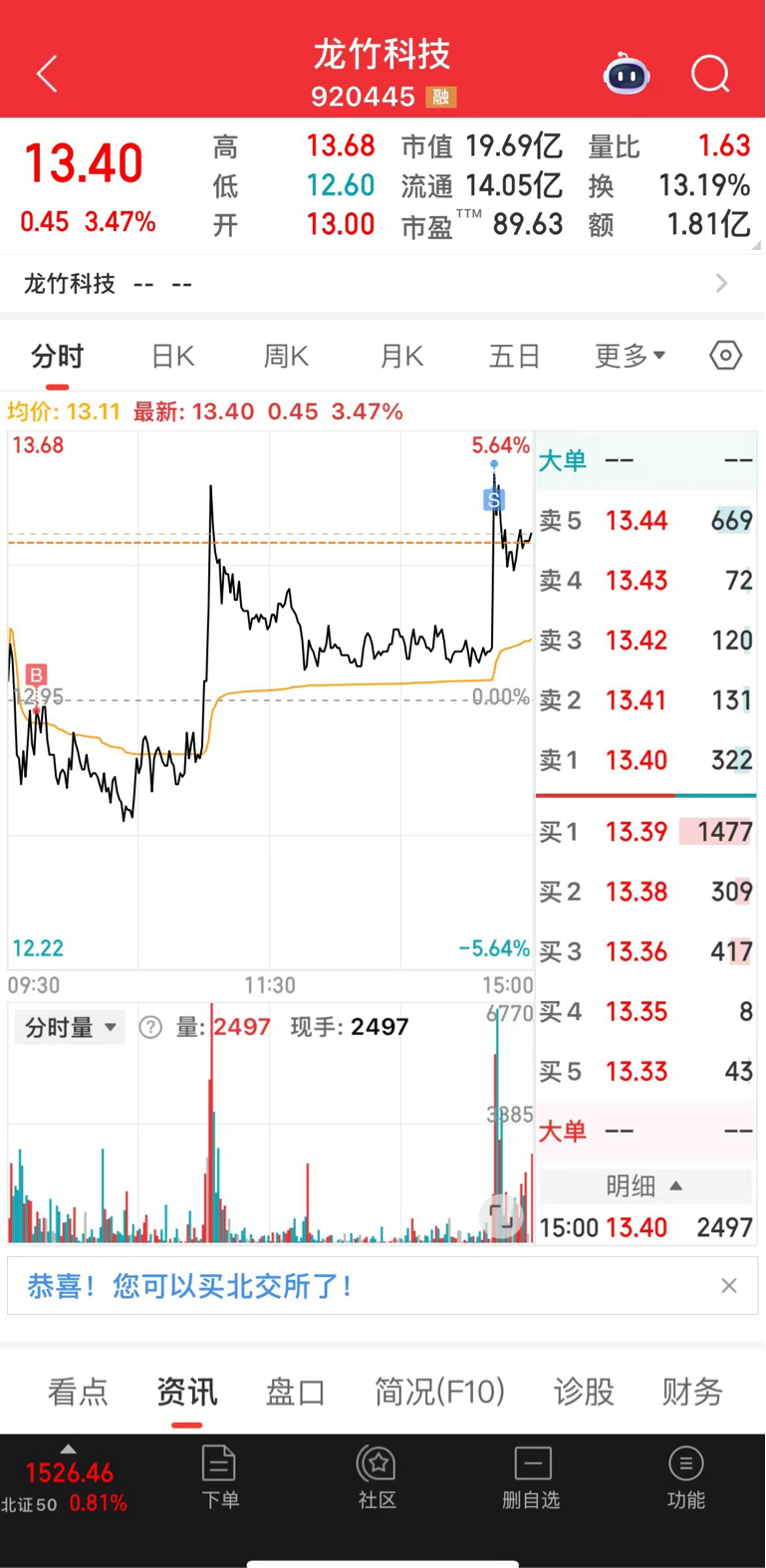 $龙竹科技(SZ920445)$ 13.6t出