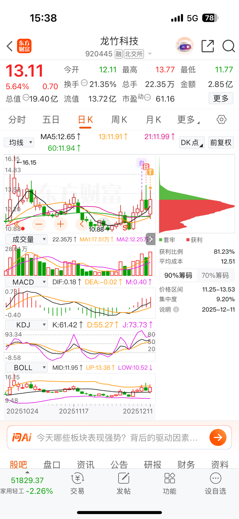 $龙竹科技(SZ920445)$ 前天进入获利盘选股模式,昨天回落买入,今天做个踢,香喷喷
