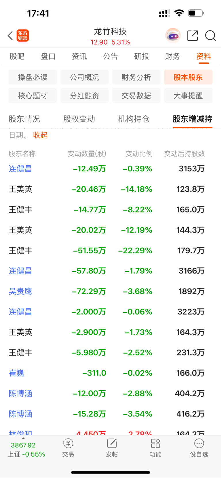 $龙竹科技(SZ920445)$ 股东一直在减仓是什么意思啊?