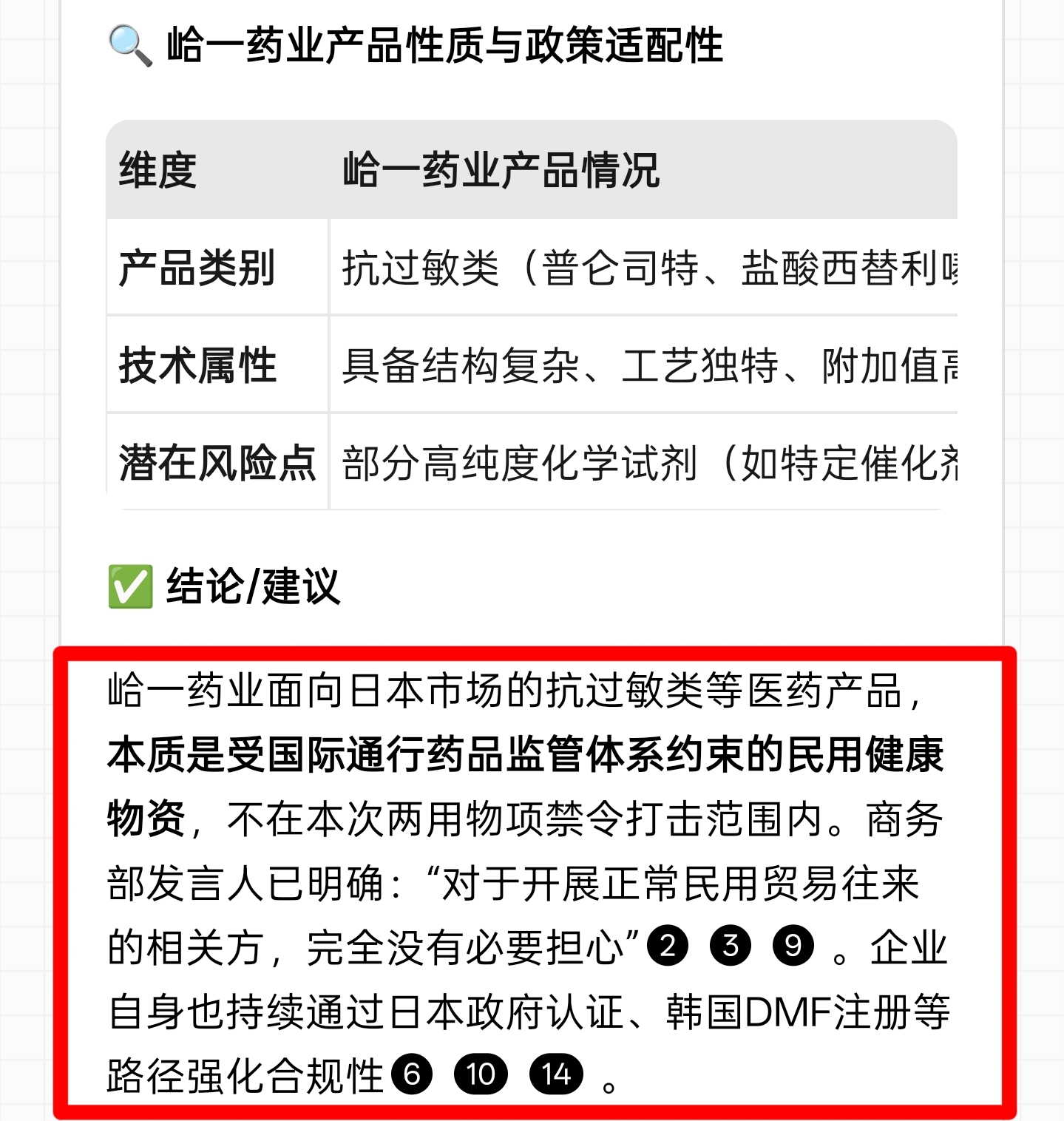 原来峆一药业出口日本韩国所有产品都不属于中方禁令范围!!!