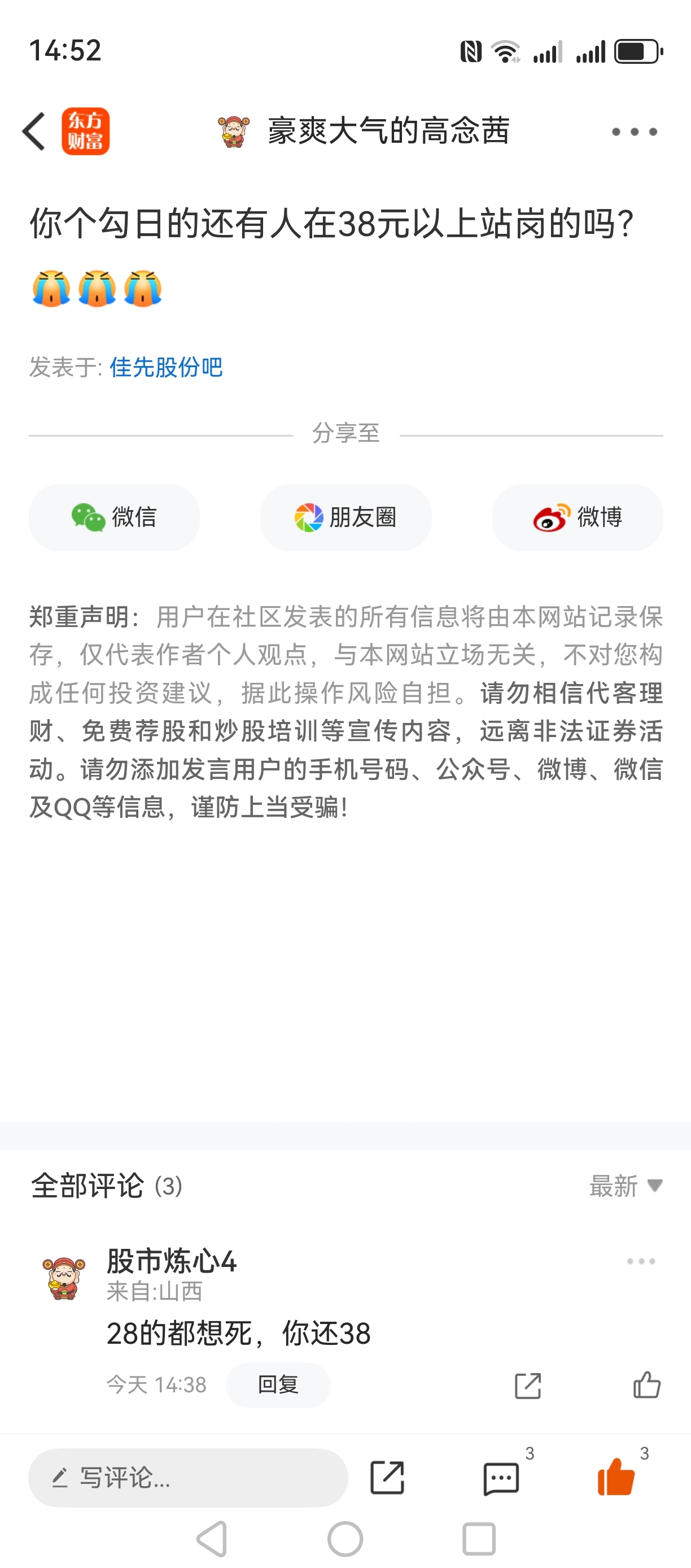 温馨提示: 1.根据《证券法》规定,禁止编造、传播虚假信息或者误导性信息,扰乱证券市场;2.用户在本社区发表的所有资料、言论等仅代表个人观点,与本网站立场无关,不对您构成任何投资建议。用户应基于自己的独立判断,自行决定证券投资并承担相应风险。《东方财富社区管理规定》