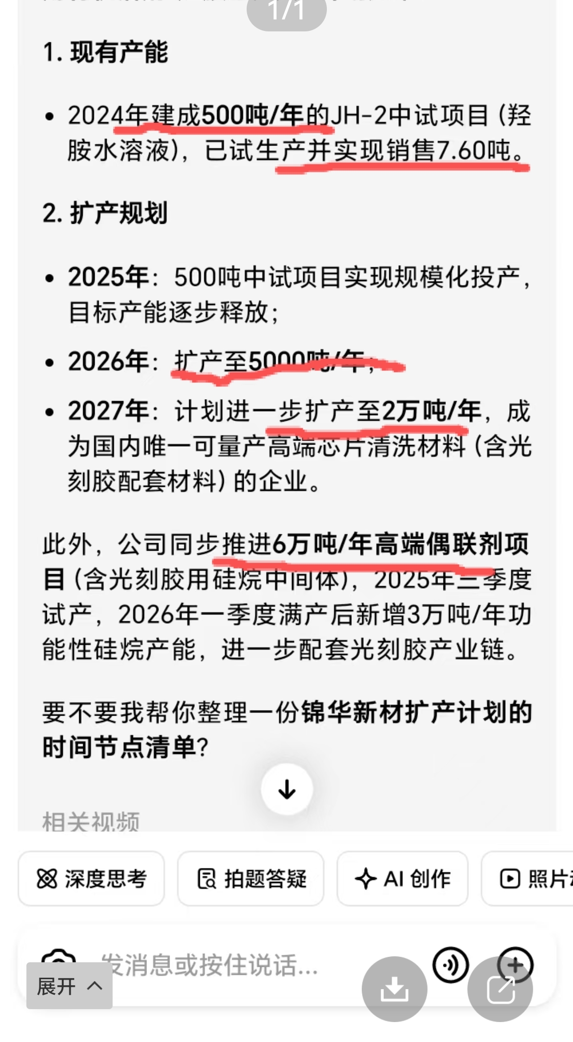 $佳先股份(SZ920489)$ 锦华新材只有70几吨量,股价60多!