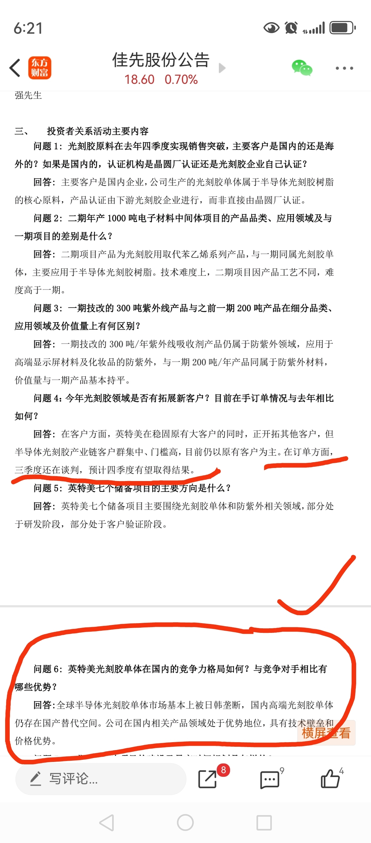 佳先股份公司说了12月份公布光刻胶的最新订单。下周五前,估计会公布最新订单信息。