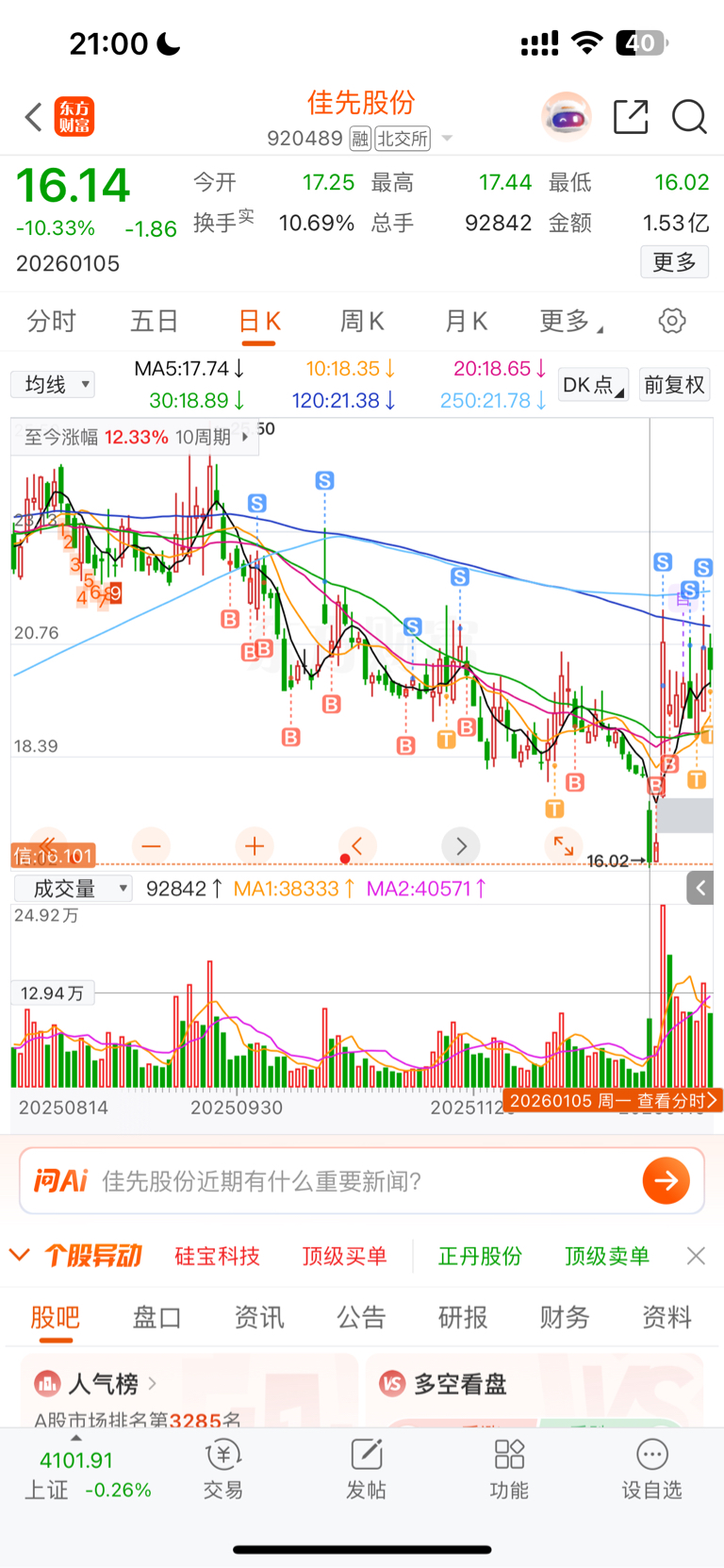 $佳先股份(SZ920489)$ 大跌买大涨卖,不然还在高位套着