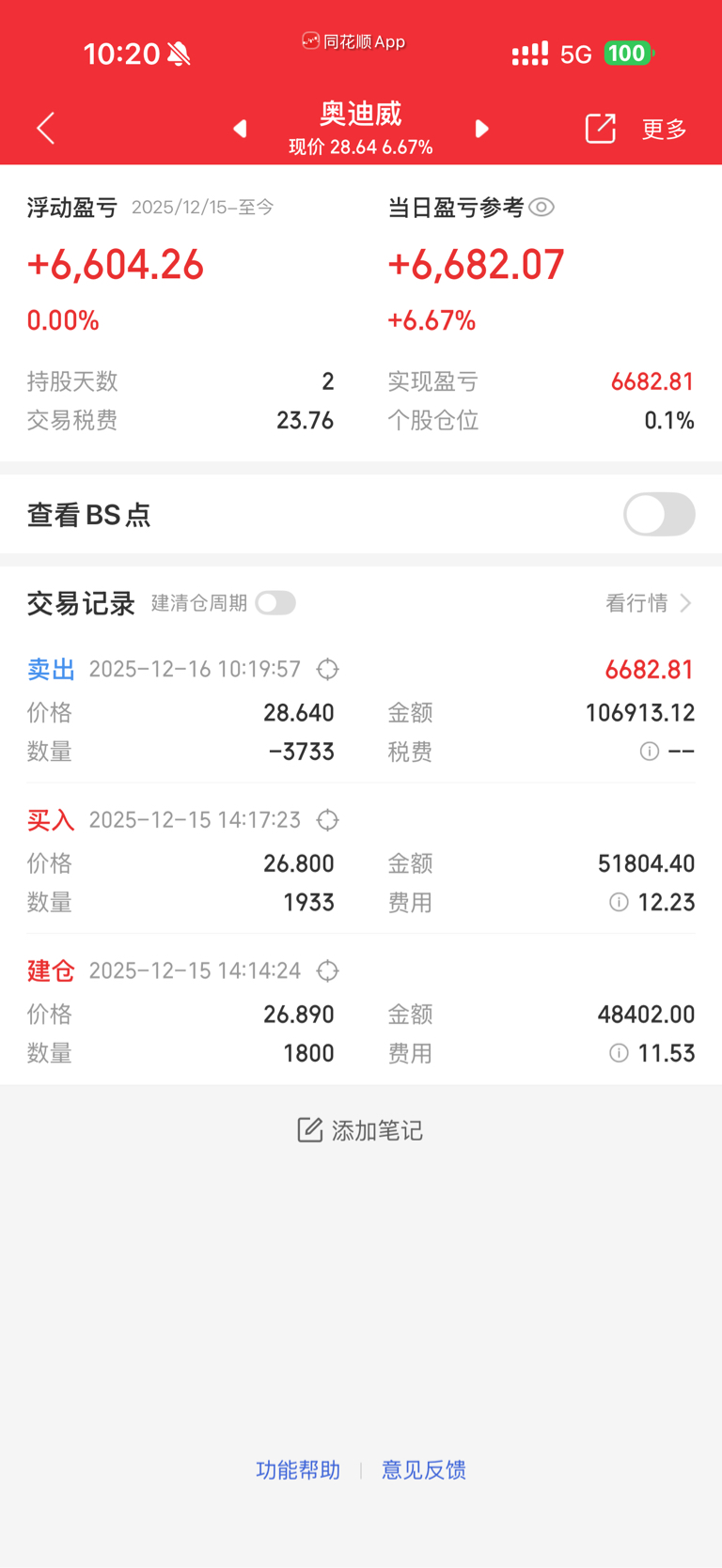 $奥迪威(SZ920491)$ 小赚6个点,跑了,感谢主力,祝坚守的兄弟发财