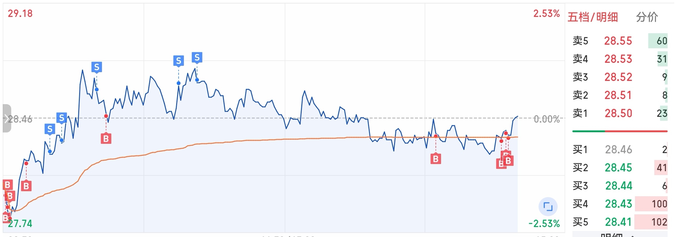 $奥迪威(SZ920491)$ 今天北证下杀的时候,奥迪威没怎么杀,一直维持在28.30,以我对阿庄的了解。嘿嘿。