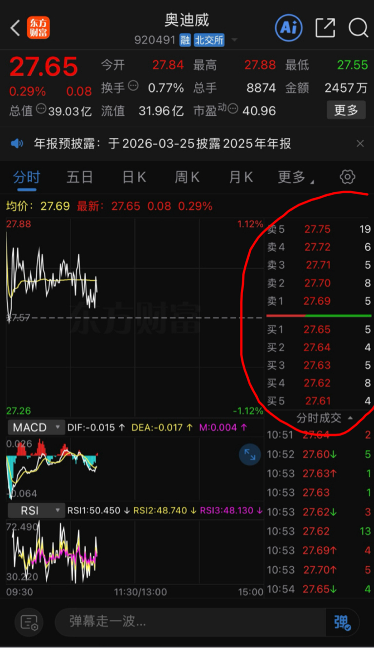 $奥迪威(SZ920491)$ 难得看到盘口这么干净的奥迪威,做市商的挂单哪去了?
