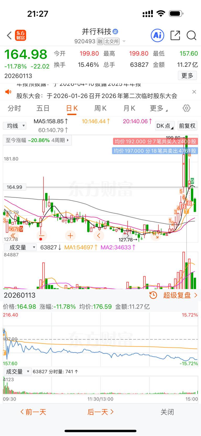 $并行科技(SZ920493)$ 明天再跌得动融资了,唉