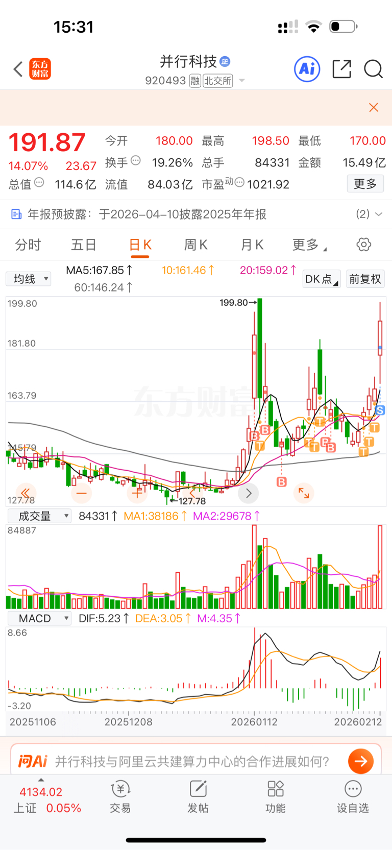 $并行科技(SZ920493)$ 第一次建仓180买的,然后一路买一路T,两个号都是一样的操作,今天全部清仓了赚了60多个,这是个好股但是你得坚持持有,不能追高了就割,那就是纯韭菜。就这样吧,大家马年大吉