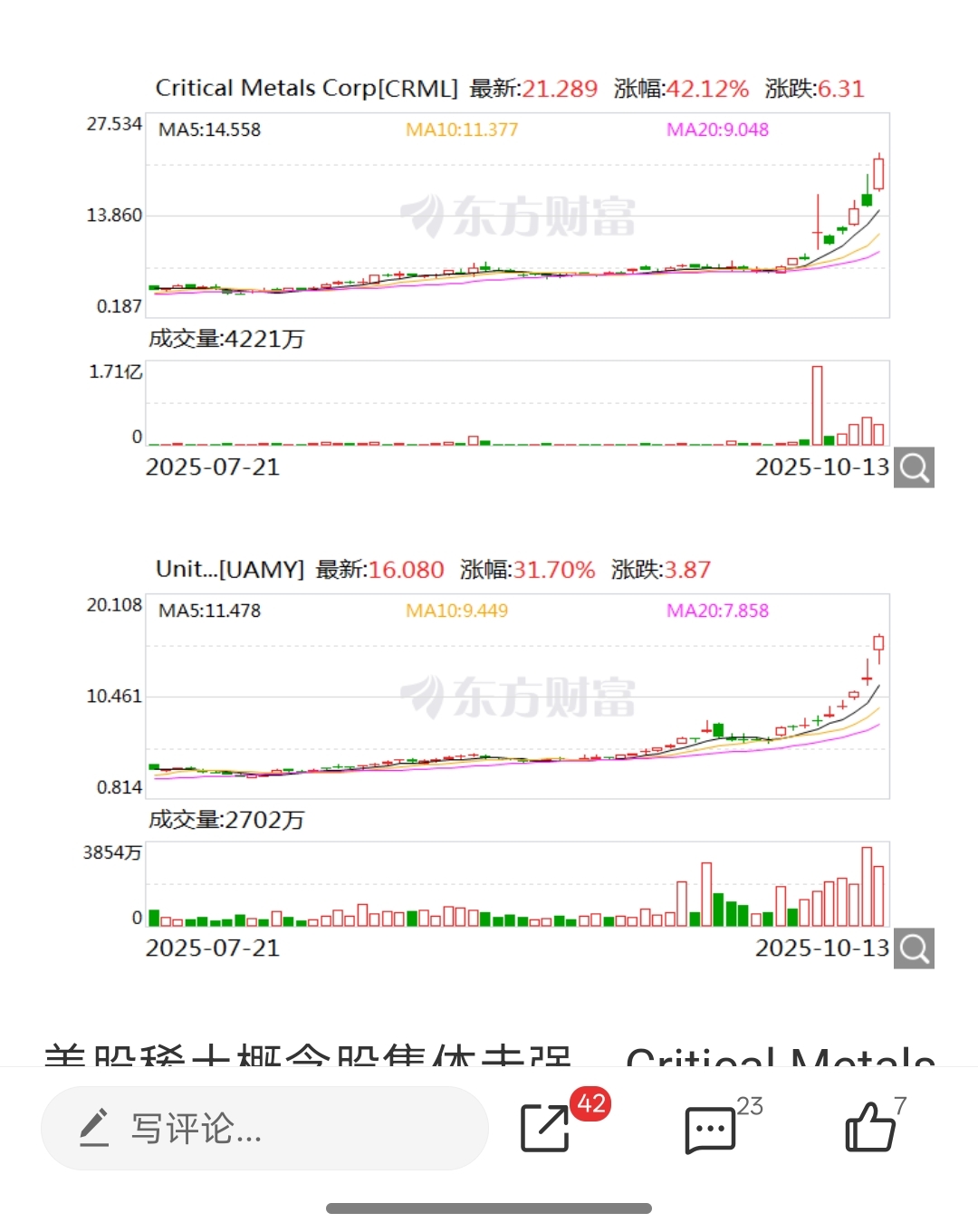 10月13号晚,美股稀土大涨,现在都涨40个点了,稀土是中国的王牌,明天A股稀土