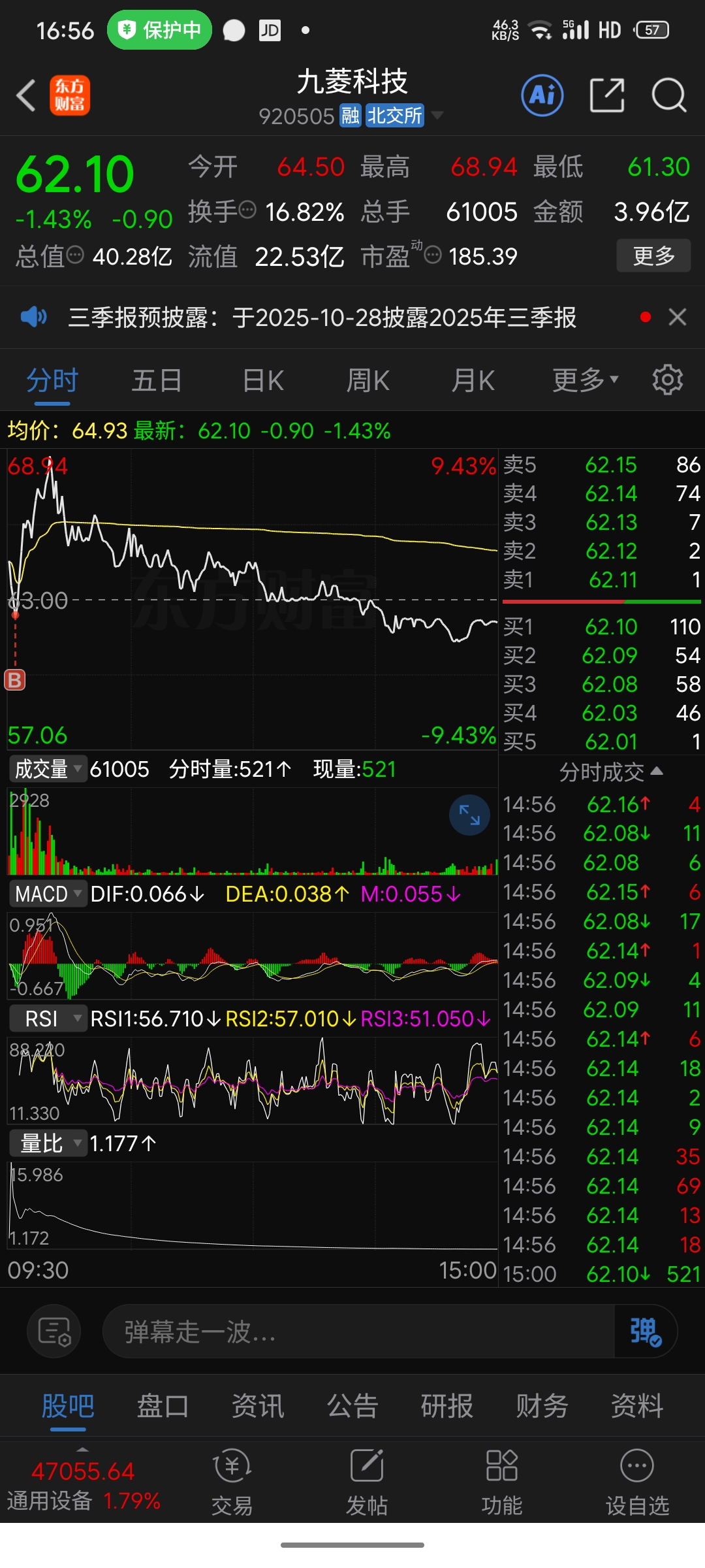 $九菱科技(SZ920505)$ 盘中富贵。。。