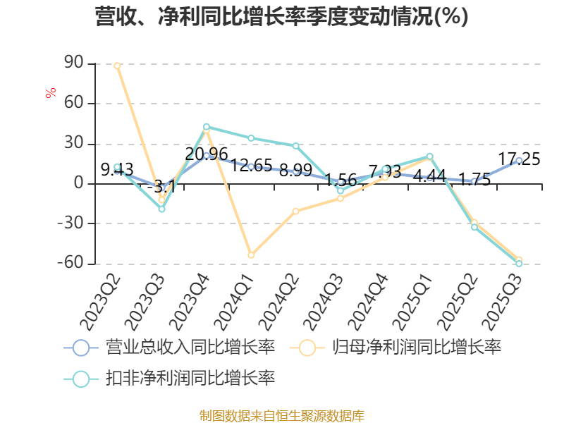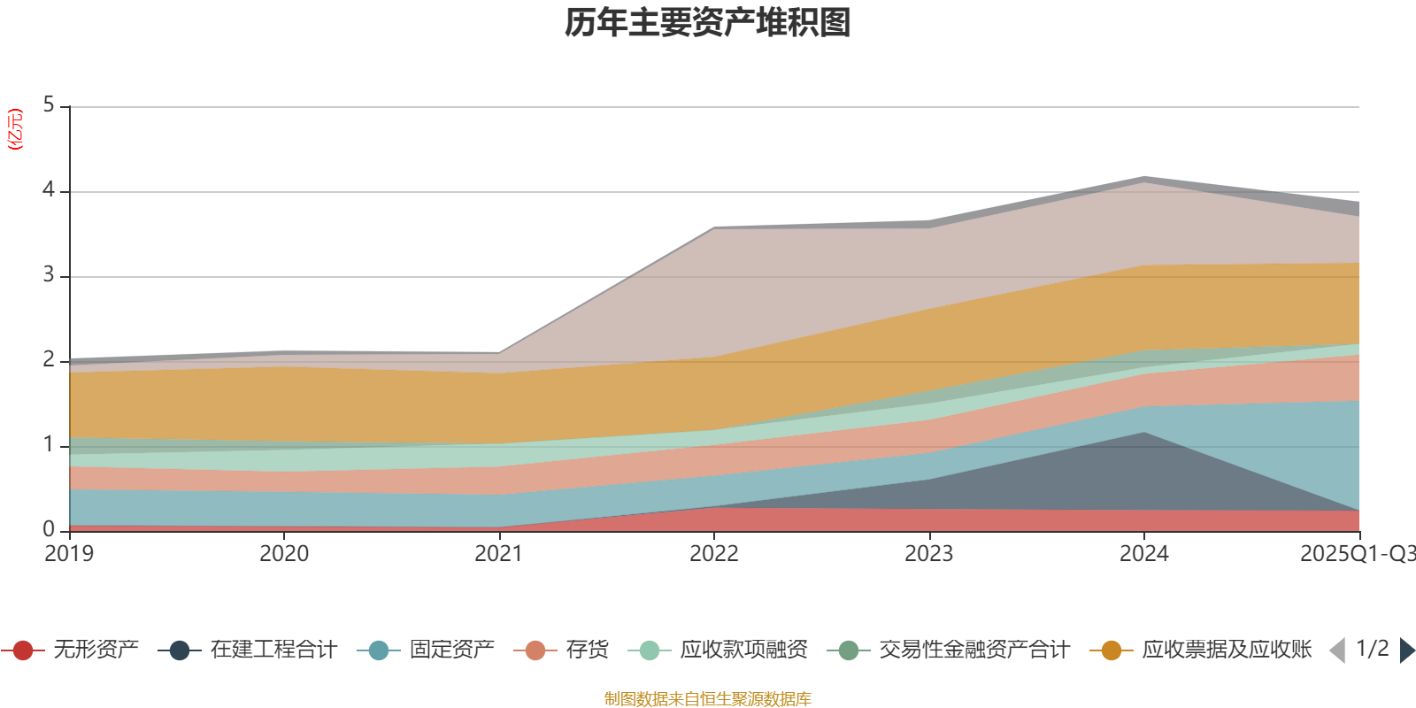 资产重大变化方面,截至2025年三季度末,公司固定资产较上年末增加328.89%,占公司总资产比重上升26.16个百分点;在建工程合计较上年末减少99.88%,占公司总资产比重下降21.96个百分点;货币资金较上年末减少43.89%,占公司总资产比重下降9.19个百分点;交易性金融资产合计较上年末减少100%,占公司总资产比重下降4.82个百分点。