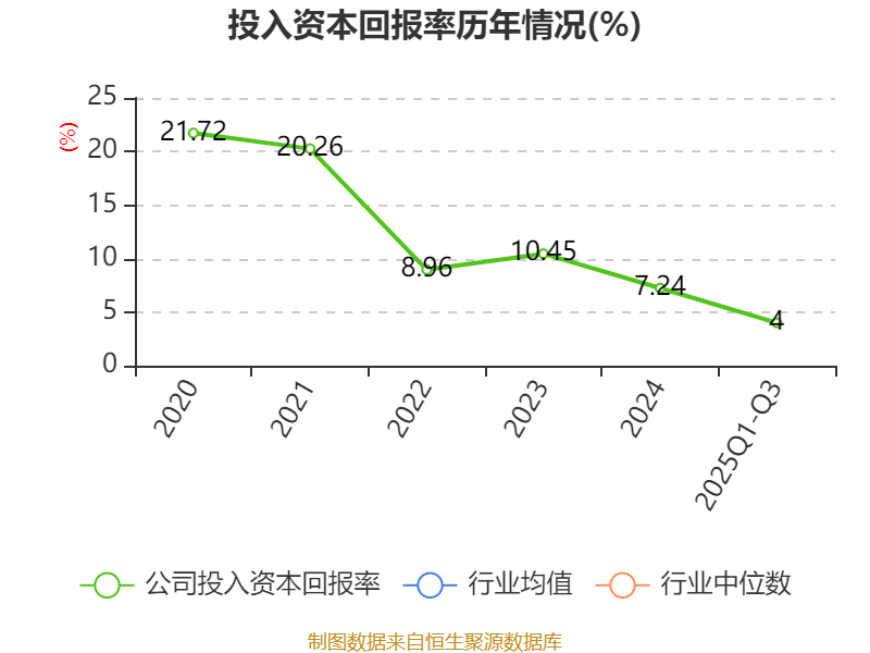 盈利能力方面, 2025年前三季度公司加权平均净资产收益率为4.05%,同比下降1.51个百分点。公司2025年前三季度投入资本回报率为4%,较上年同期下降1.28个百分点。
