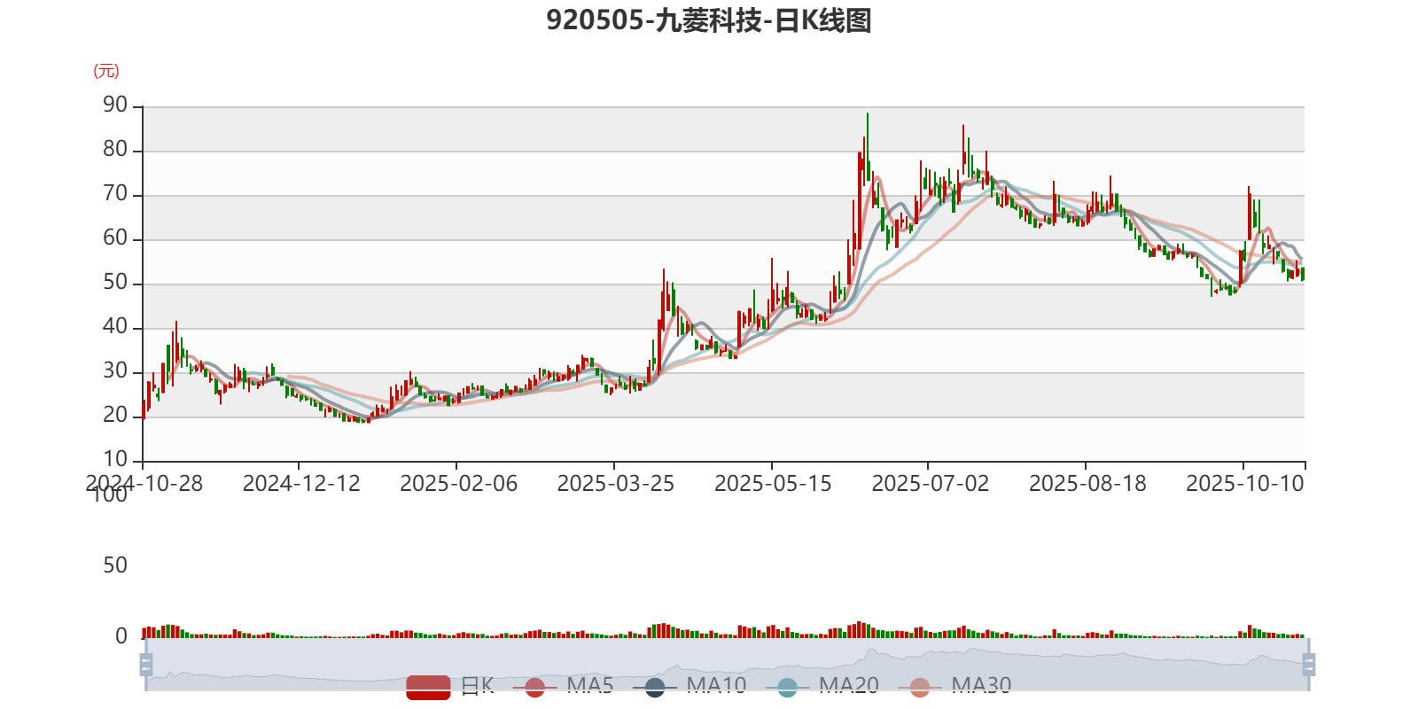 以10月28日收盘价计算,九菱科技目前市盈率(TTM)约为166.21倍,市净率(LF)约9.93倍,市销率(TTM)约20.65倍。