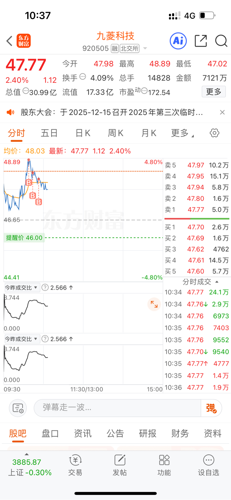 $九菱科技(SZ920505)$ 追了3次。目前狠狠被割2个点