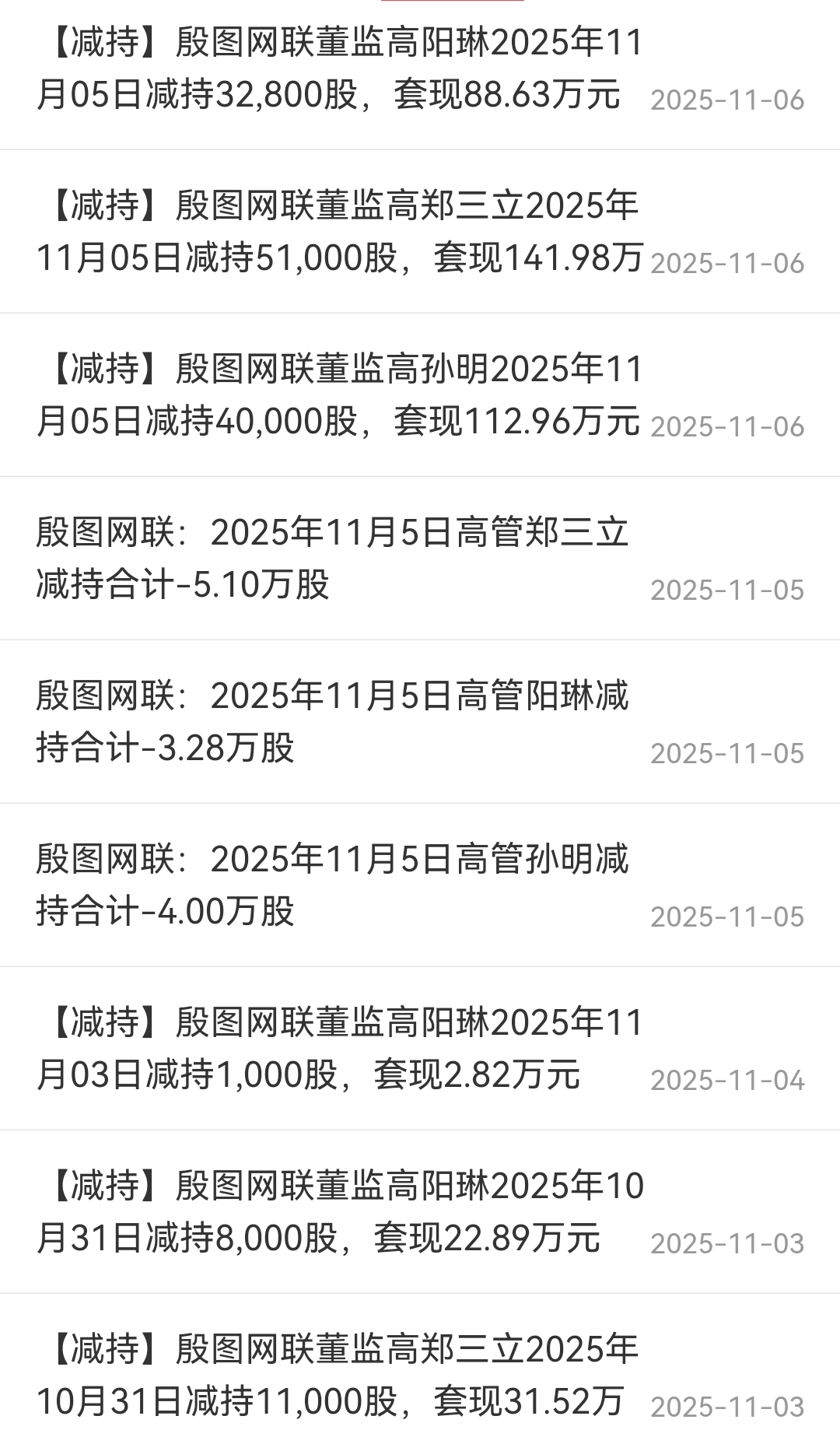 $殷图网联(SZ920508)$ 高管疯狂减持中,出逃吧!