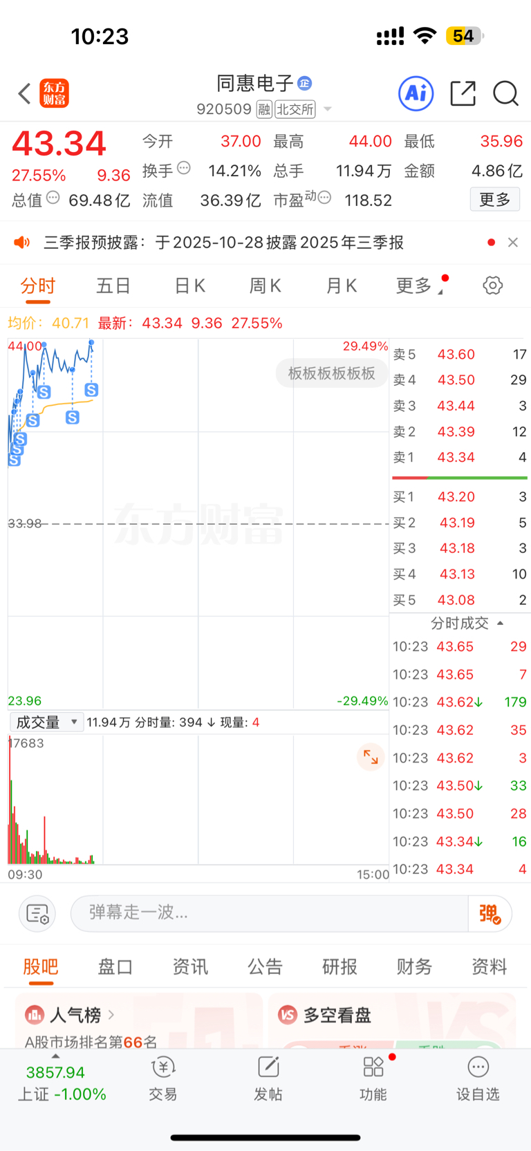 $同惠电子(SZ920509)$ 上周五没有卖,今天清仓!留下的兄弟发财