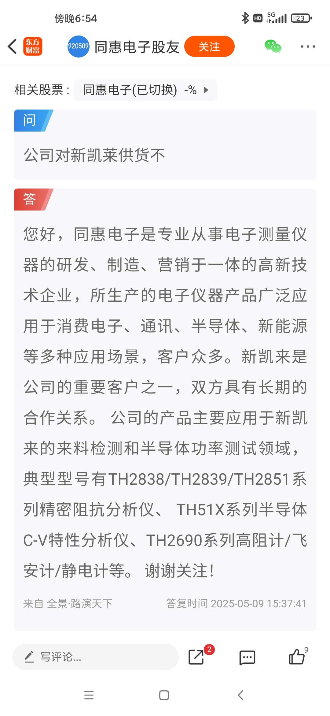 $同惠电子(SZ920509)$