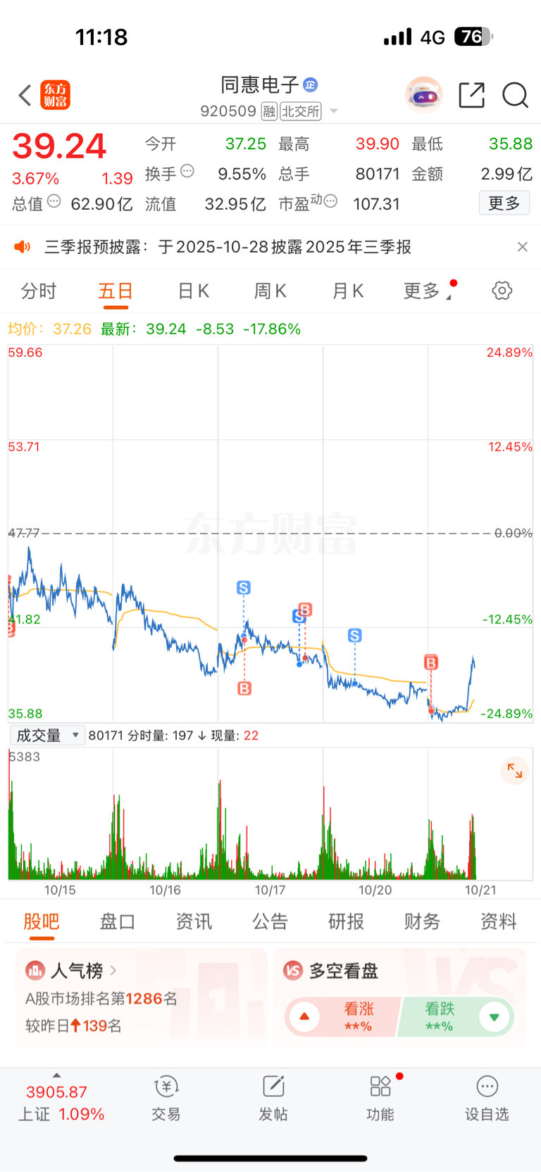 $同惠电子(SZ920509)$ 还好早上买回来了 万幸