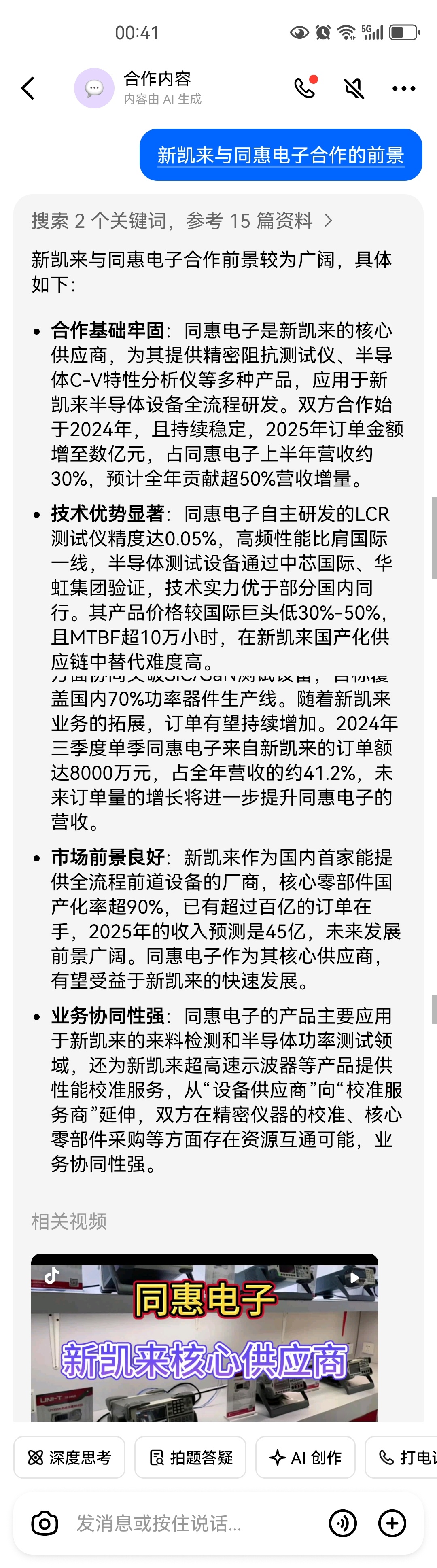$同惠电子(SZ920509)$ 同惠电子是新凯来核心供应商
