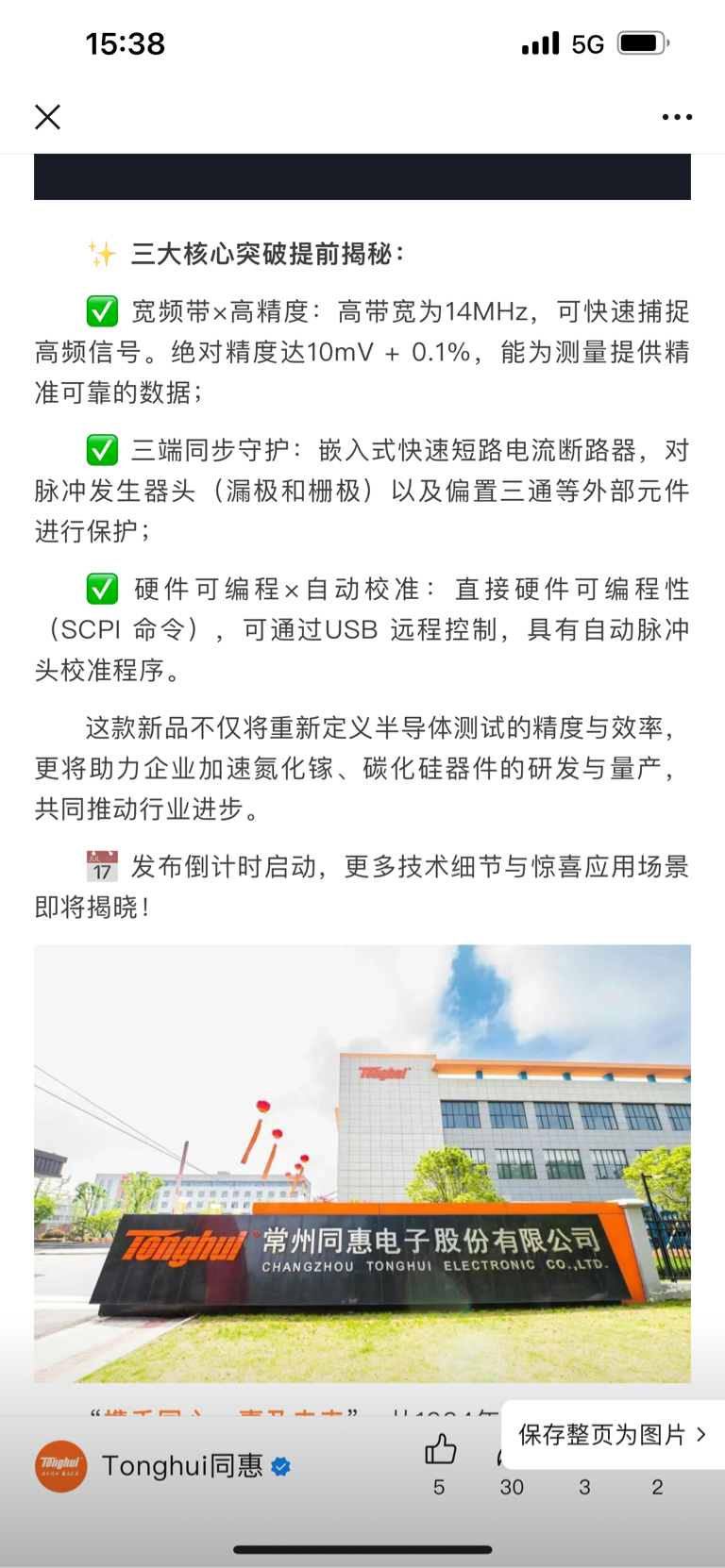 $同惠电子(SZ920509)$  #半导体设备狂飙,推动因素是什么?#  $半导体(BK1036)$  #半导体设备迎大发展期#  今天同惠这么坚挺还是有原因的,收市刚公布的消息,即将发布重磅新品,且表明新品不仅将重新定义半导体测试的精度与效率